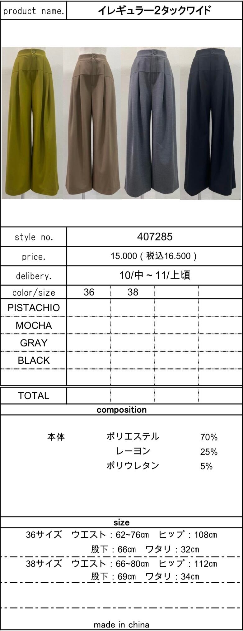 ⭐︎予約販売【 CYAN TOKYO 】イレギュラー2タックワイド (407285) 11月お届け