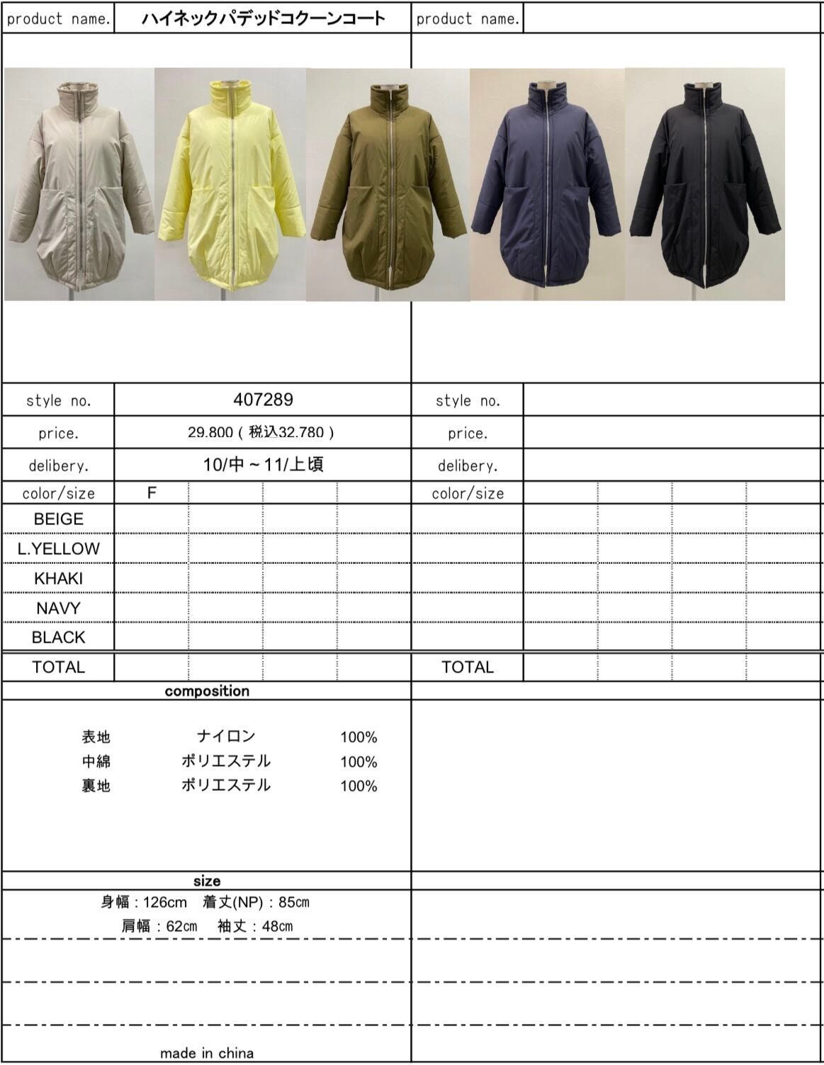 ⭐︎予約販売【 CYAN TOKYO 】ハイネックパデッドコクーンコート (407289) 11月お届け