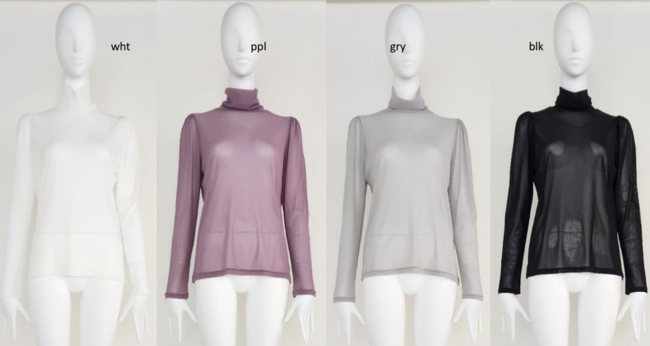 でシアーな表面感を持ち、繊細な印象を与えます。ストレッチ性も抜群で、肌当たりの良い素