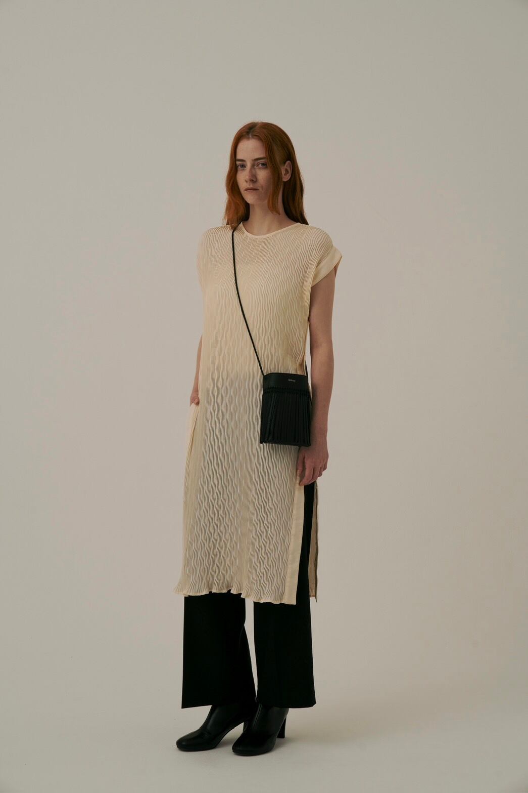 仕様に。フリンジのディテールが動きに合わせて揺れることで、エレガントで遊び心のあるアクセントを加えています。カジュアルからフェミニンなスタイルまで、幅広いコーディネートにぴったりのアイテムです。背面にファスナー付きコインポケット有り。
