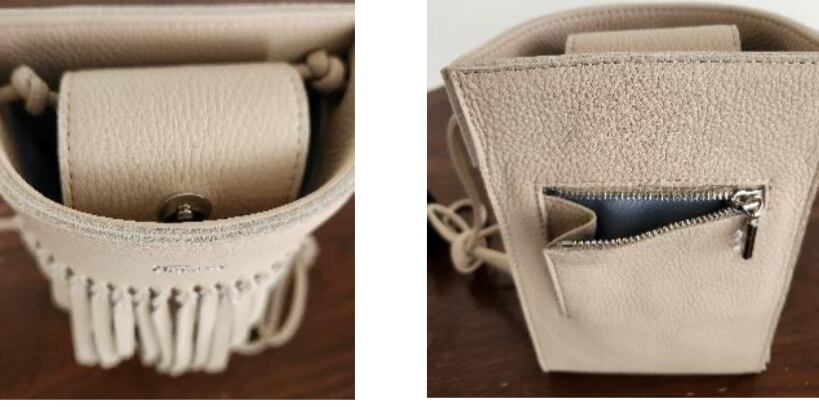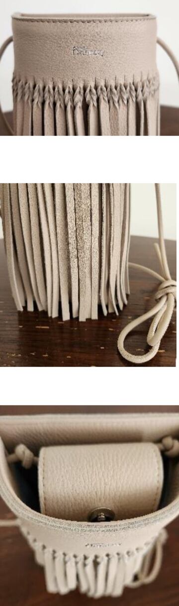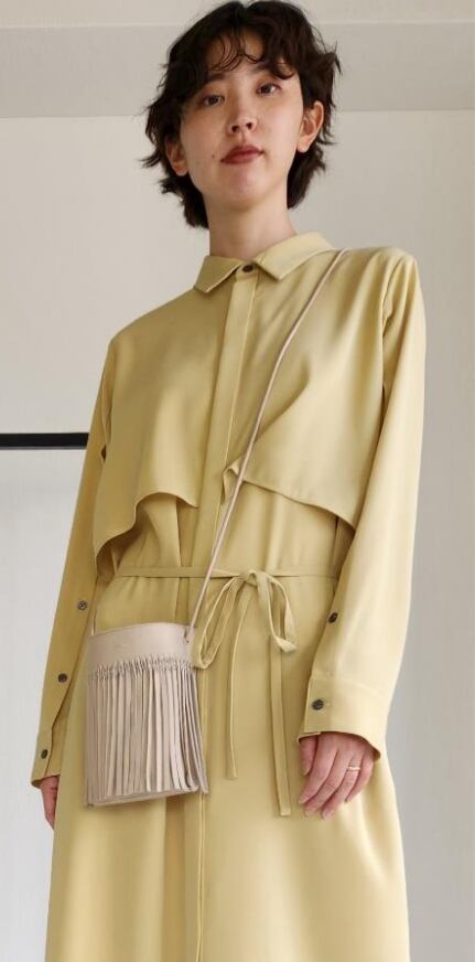 フリンジディテールが目を惹くスマホ・ショルダーバッグです。スマホがすっぽり入るサイズ感。ベルトホック付きで落下を防ぎます。ショルダー紐を結んで、型掛けと斜め掛けの2WAY