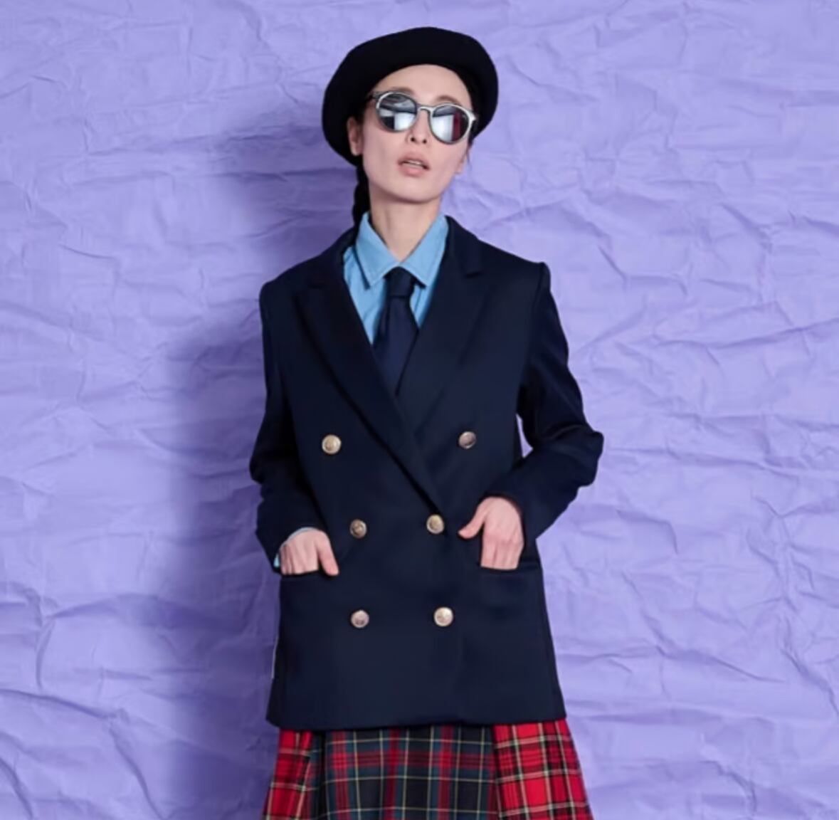 縫製とパターンが美しく出来上がっていて、着るととても格好よくてシャキッとしています。実際私も以前のブラックを持っていて、ちょっと改まった席でのお食事の時はいつも着ています。金ボタンのトラッド感もとても好み。普段のお洋服を格上げしてくれると思います。ワンピースや、デニムパンツ、チノパンツなどいろいろなお洋服に合わせてみてください。トラッドな雰囲気でお洋服好きの方が満足できる美しいジャケットだと思います。アームに少しゆとりのあるジャストなサイズ感が飽きずに長く着ることができる流行に関係ないアイテムです。ボタンを閉めると、かなり改まった雰囲気になるので、開けてカジュアルに着てください。インナーにスウェットも着用可能です。ヘリンボーンジャケットはオーバーサイズで流行的ですがこちらは、また別世界の定番アイテムになると思います。丸みのある金ボタンもとても高級な雰囲気です。