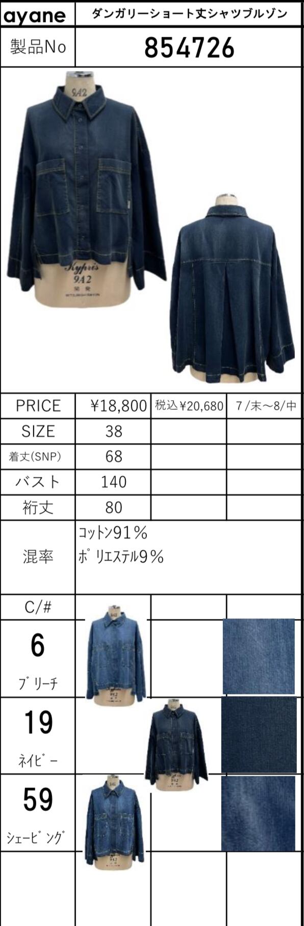 【 ayane 】ダンガリーショート丈シャツブルゾン (854726)