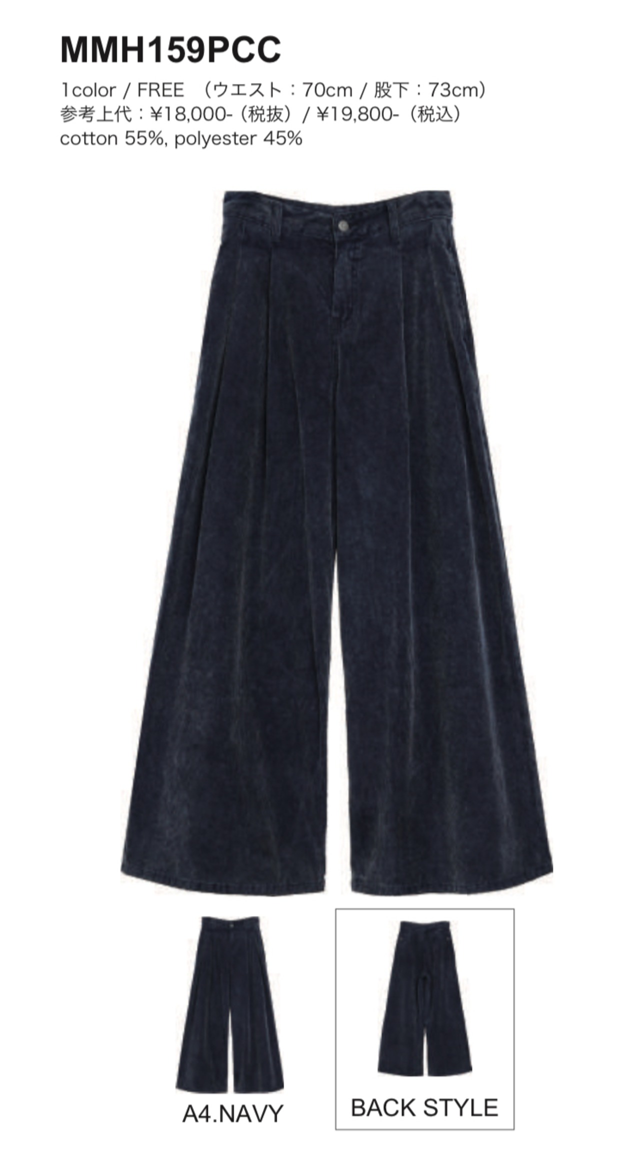 予約販売【 MICALLE MICALLE 】 細コール ハイウエストパンツ(ММН159РСС )9月下旬お届け