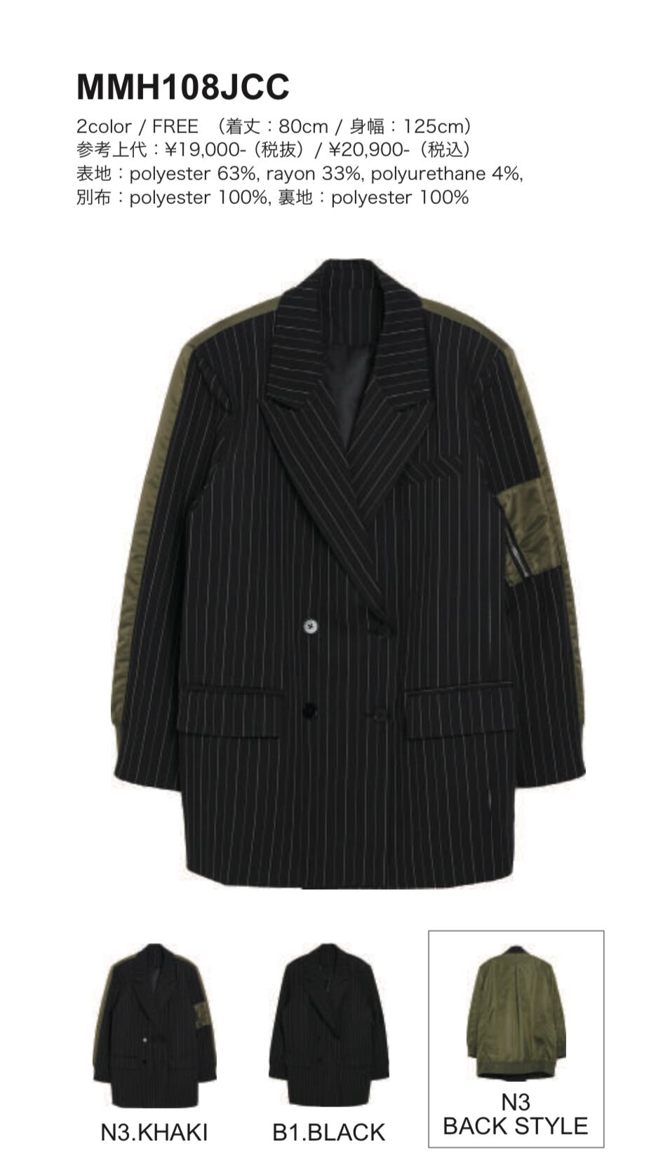 FREE (着丈:80cm / 身幅:125cm)