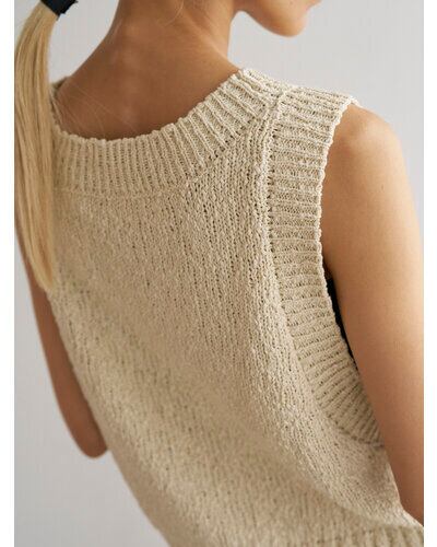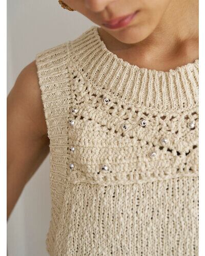 シルバーのメタルビーズを散らばせ、遊び心を加えたニットベストです。