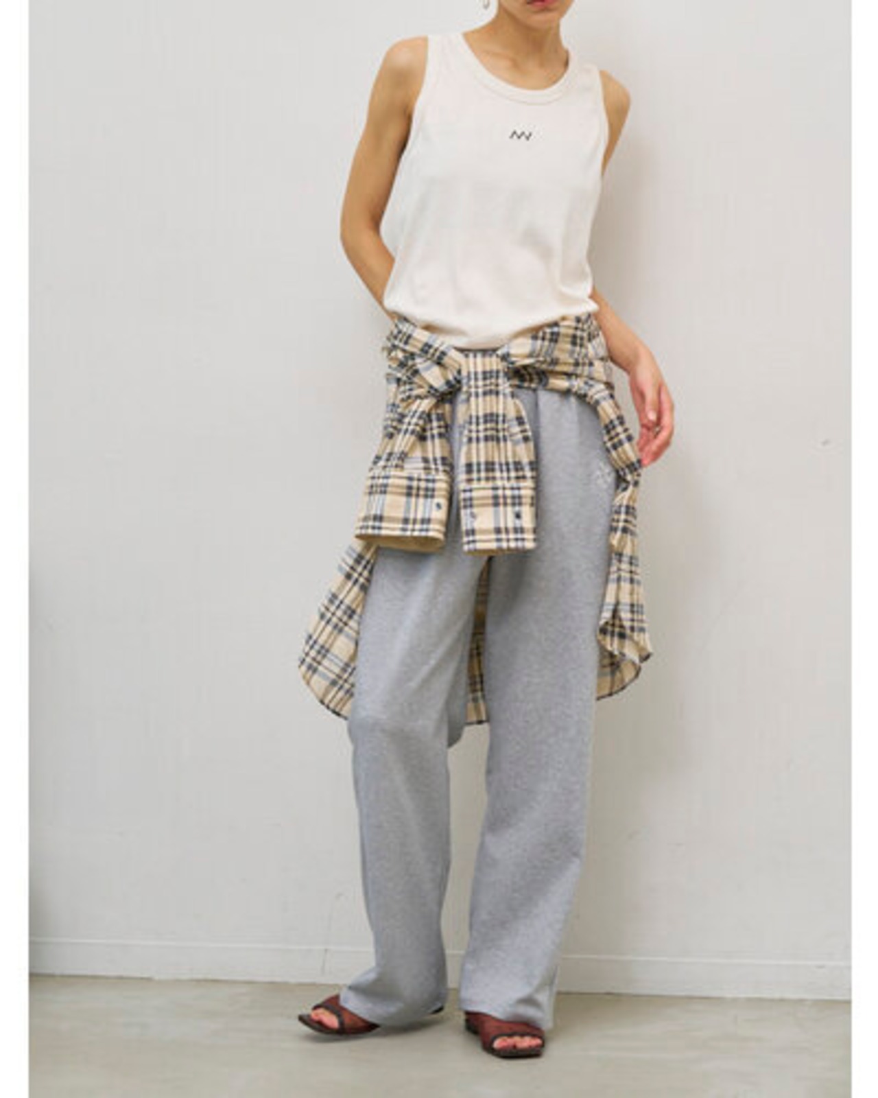 イージーな履き心地を叶えつつ、ベルト無しで内側にゴムが出るウエストの仕様で、きちんと感を出しました。