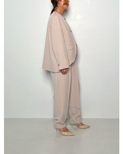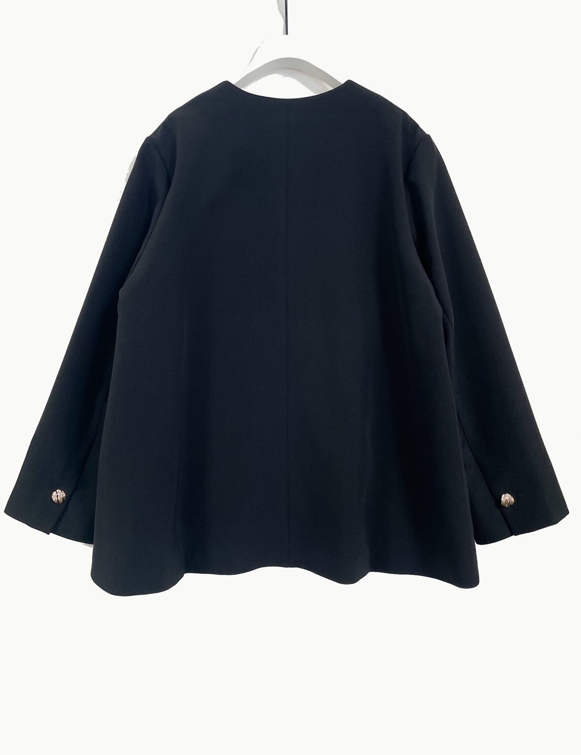 落ち感のあるダブルクロス素材を使用した、ノーカラーのJKです。