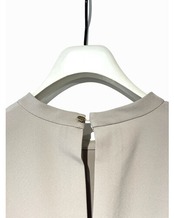 袖はシャーリングのデザインを施し、絞ると丸い袖のフォルムが生まれ女性らしくご着用いただけます。袖口は調節釦を付けることで絞ることも可能。マルチWAYな袖で様々な着用