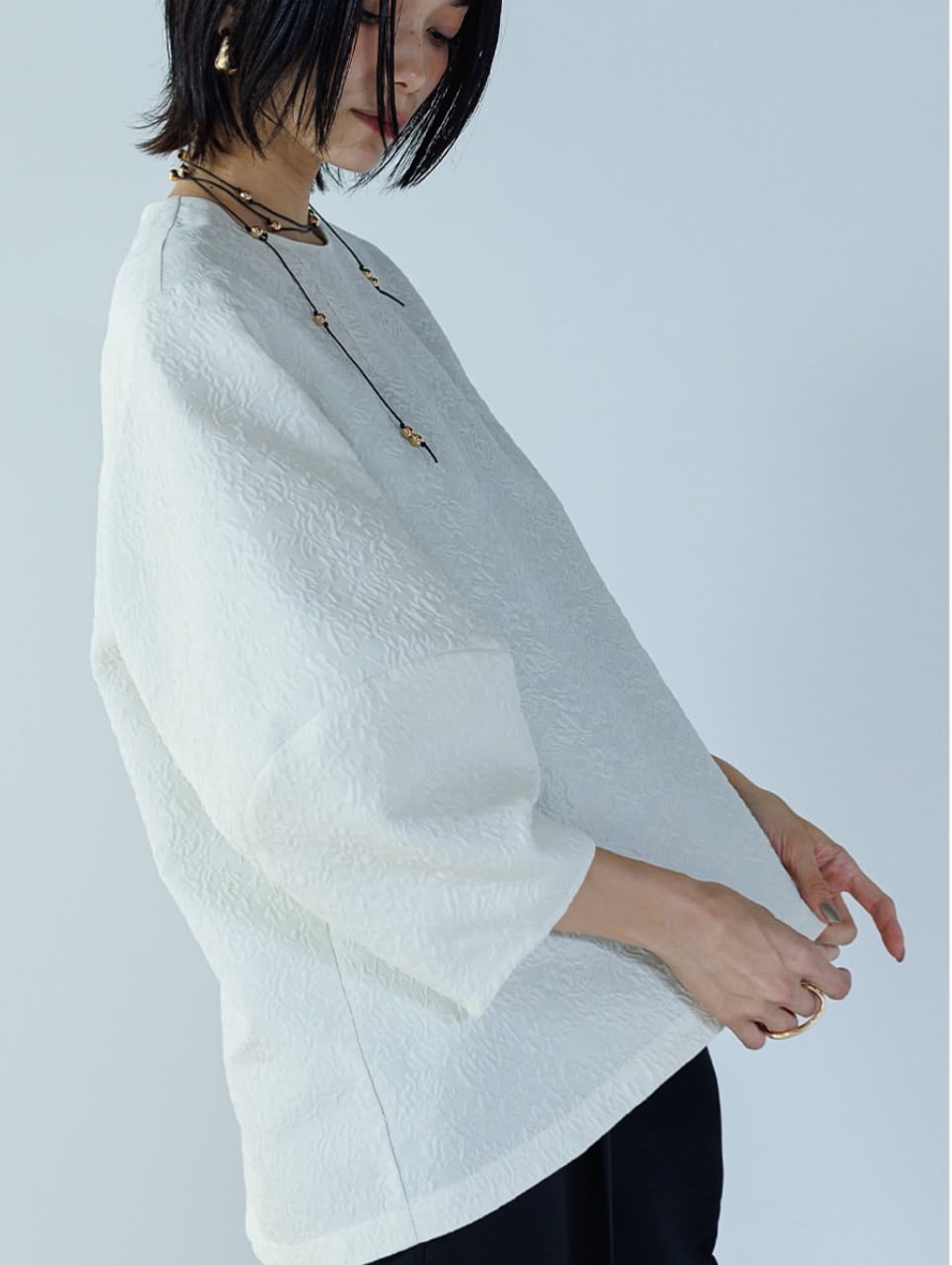 ハリ感と表面感のあるジャガード素材を使用したボリュームスリーブTBLです。