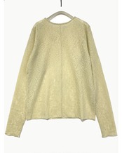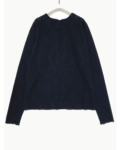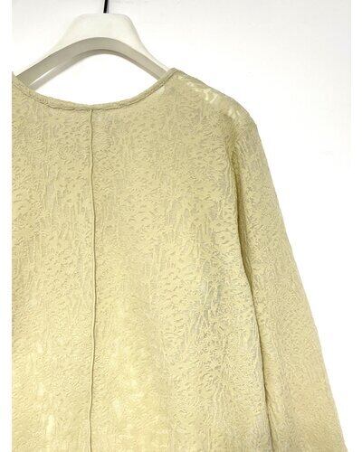 袖丈は長めに設計し、袖口でくしゅっとたまるような設計にしました。要所にメロウ始末を施すことでデザインポイントに。