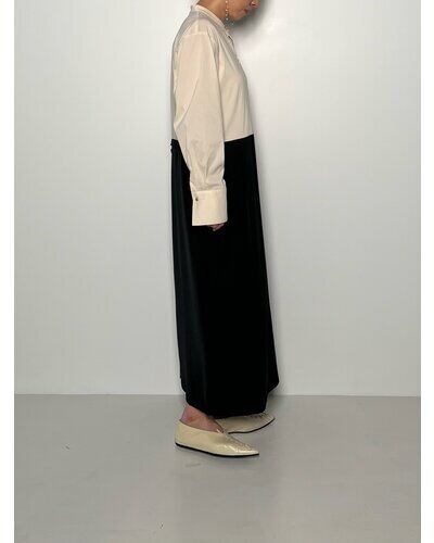 異素材をドッキングしたオケージョンに使いやすいワンピースです。