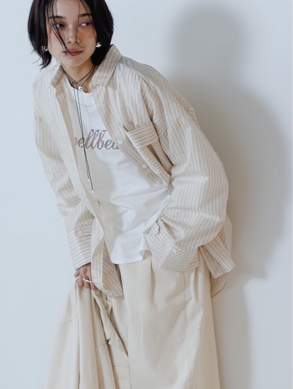 予約販売【 chignon 〜YENN〜 】[1246-470KK] マルチストライプオーバーシャツ 12月お届け
