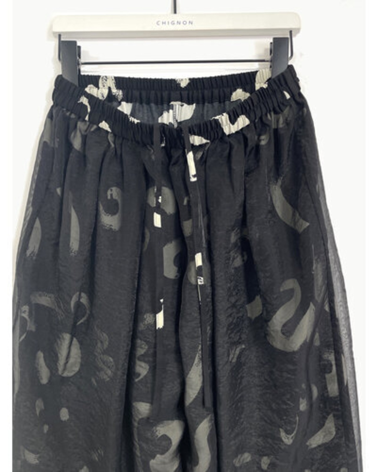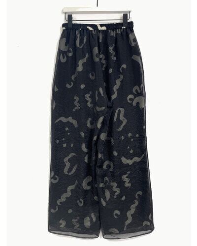 プリント柄にオーガンジーをレイヤードさせたデザインパンツです。