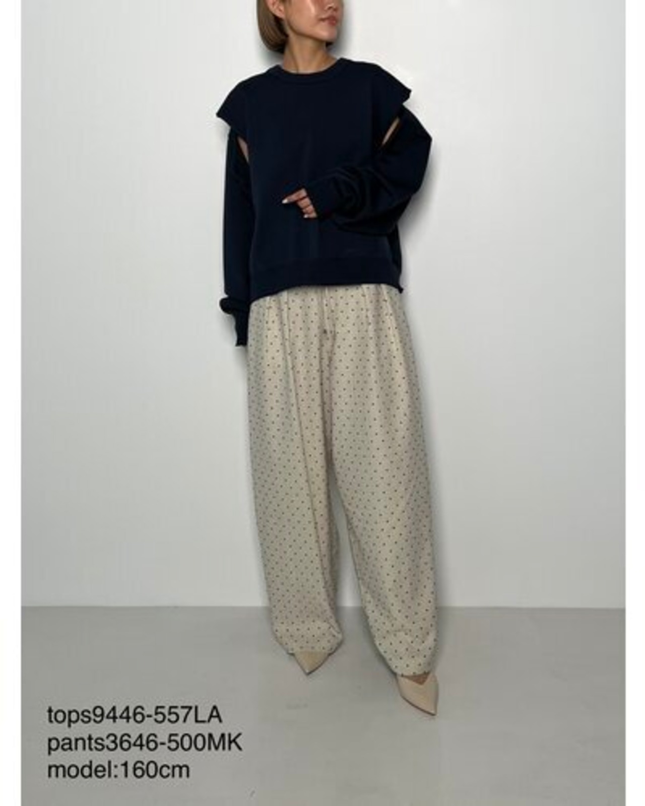 ドットフロッキーが施された落ち感のある素材を使用したタックワイドPTです。