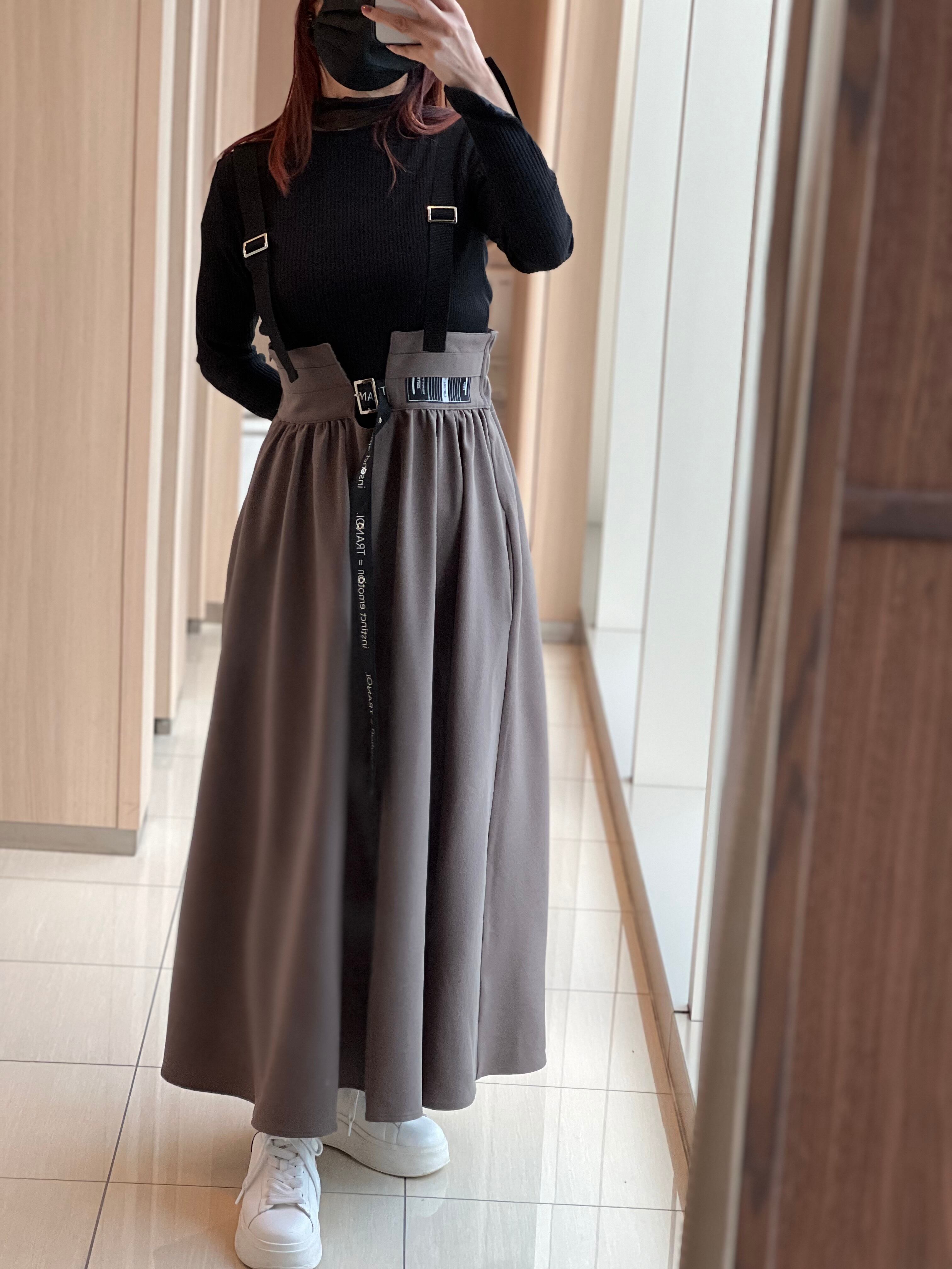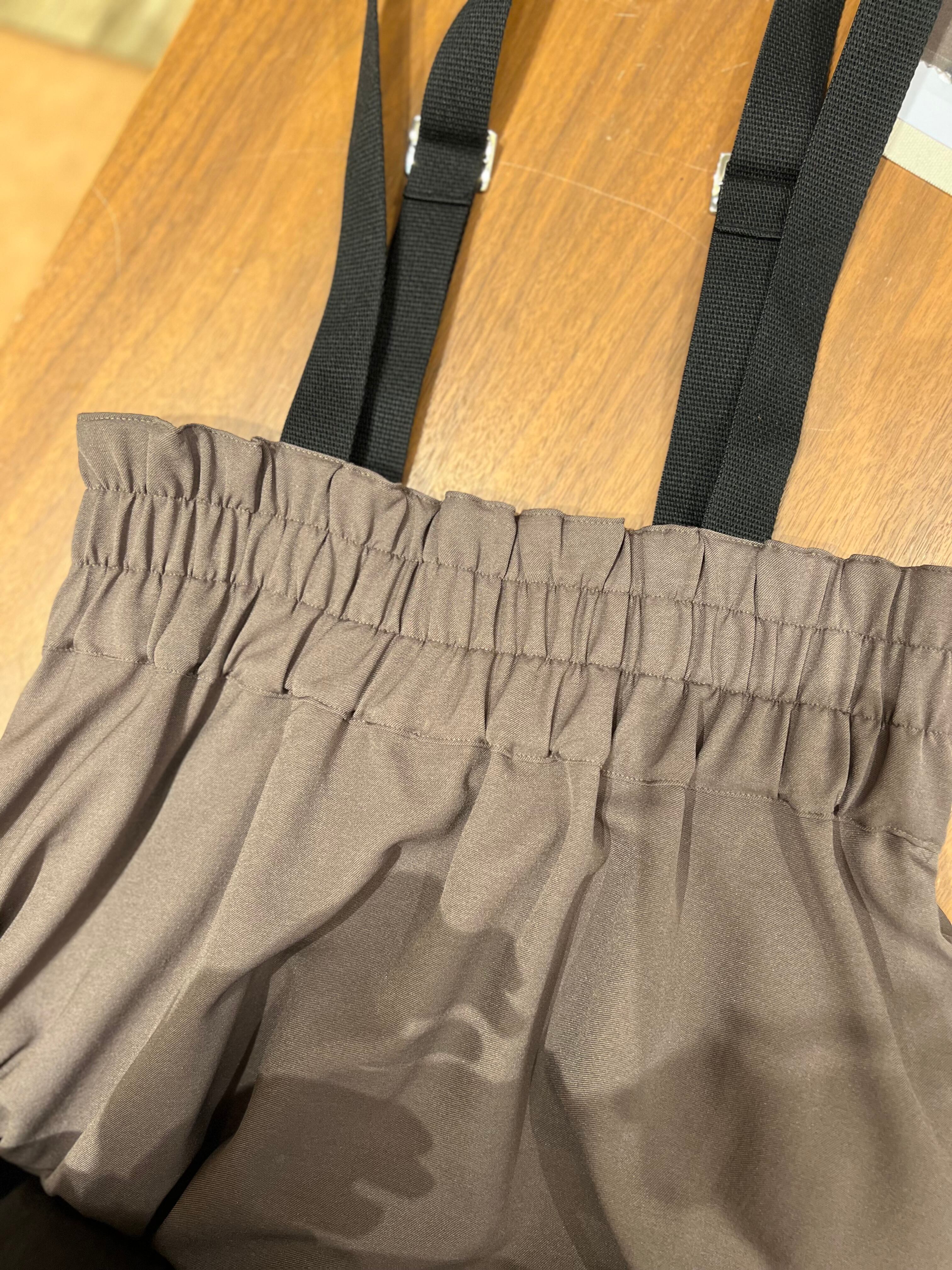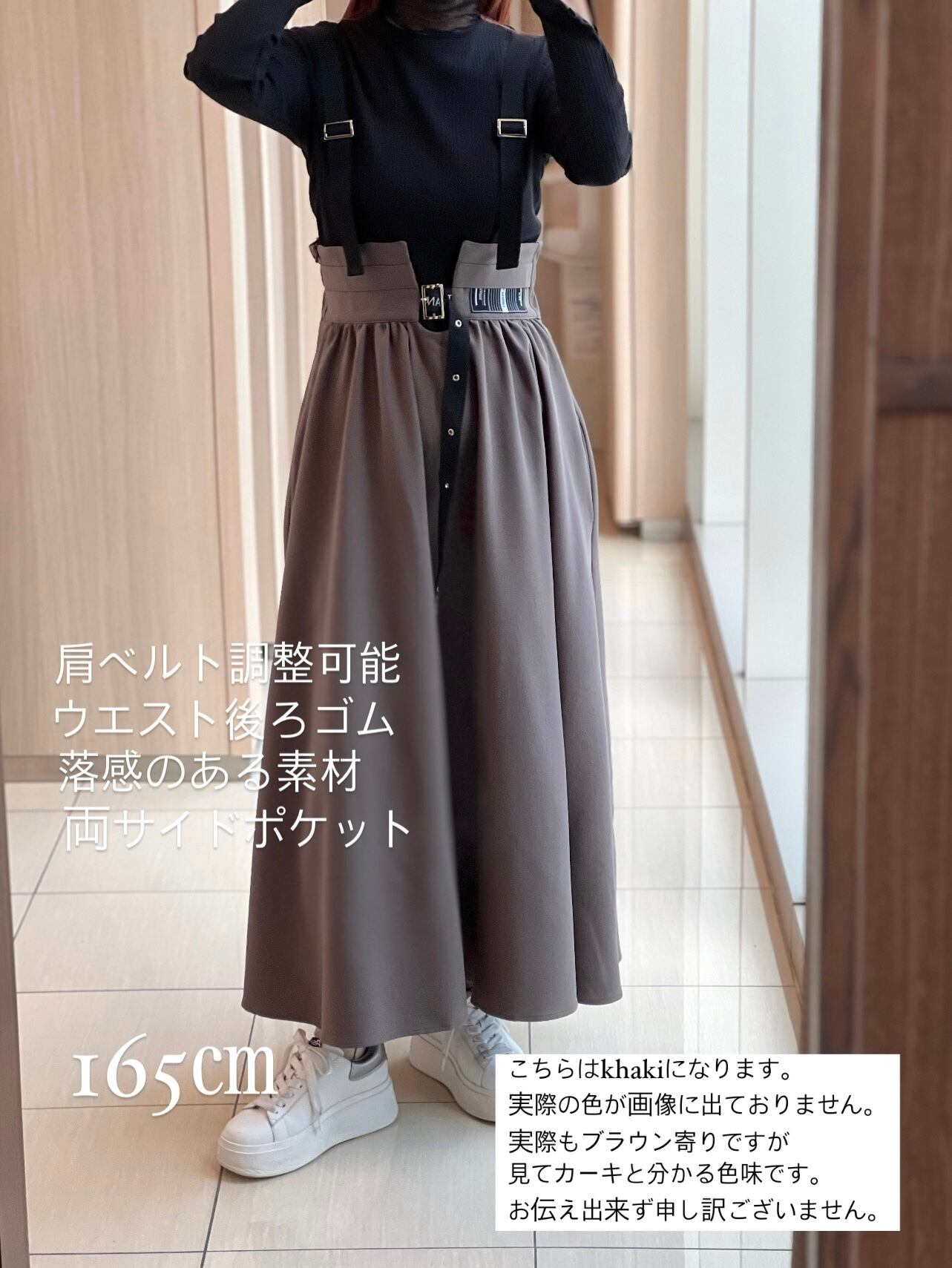 丈は肩ベルトで調整可能。ウエストは後ゴムで着用もストレスフリーの商品です♪