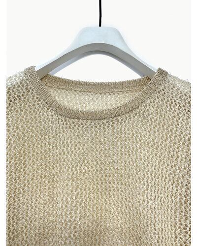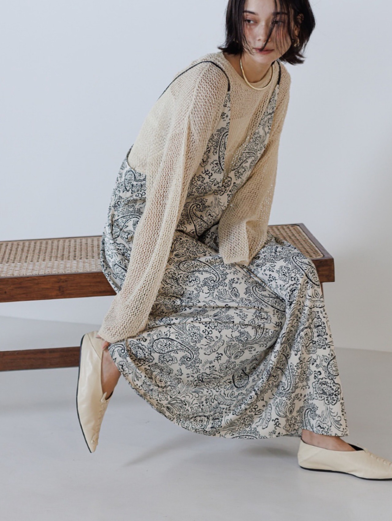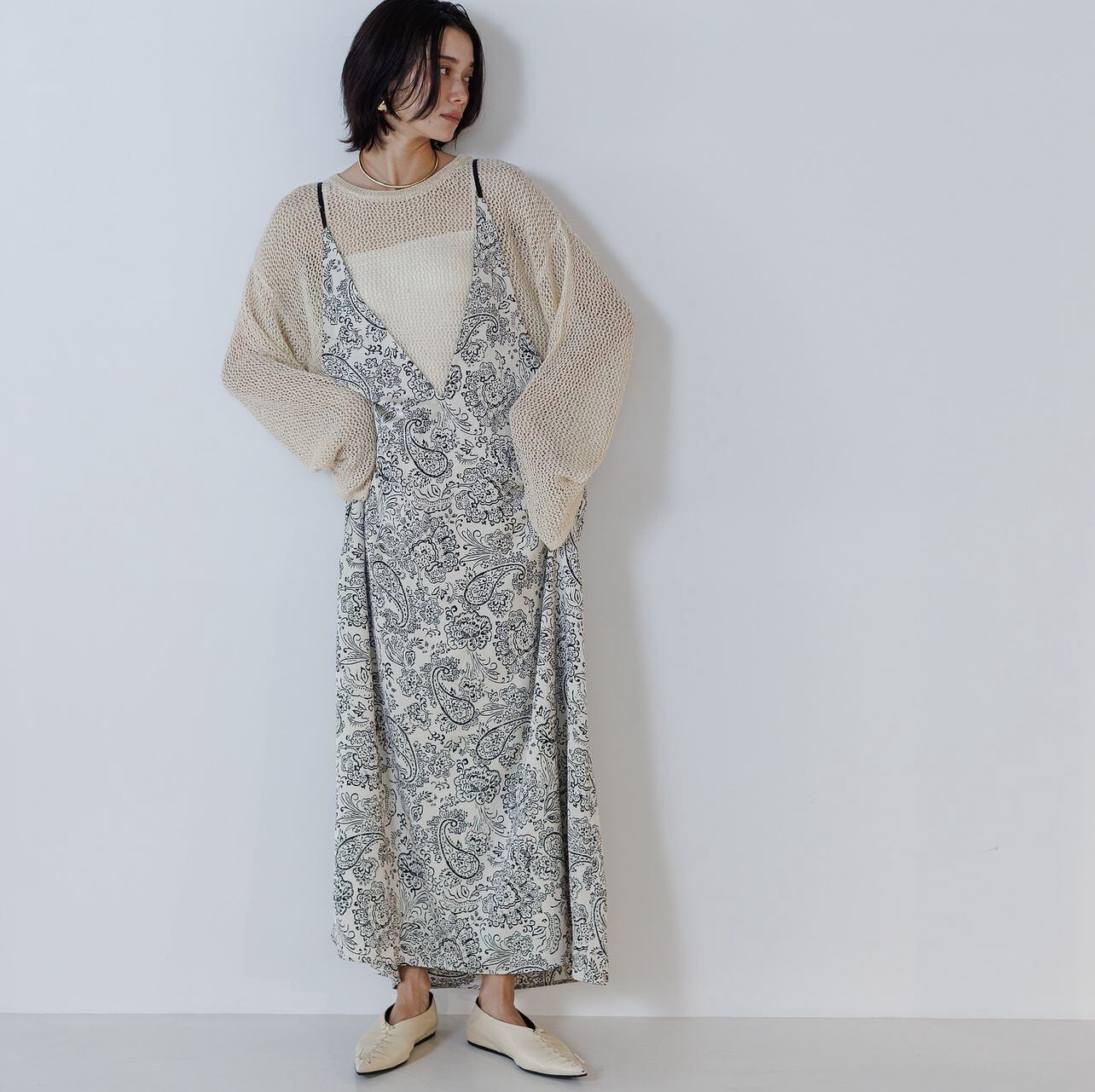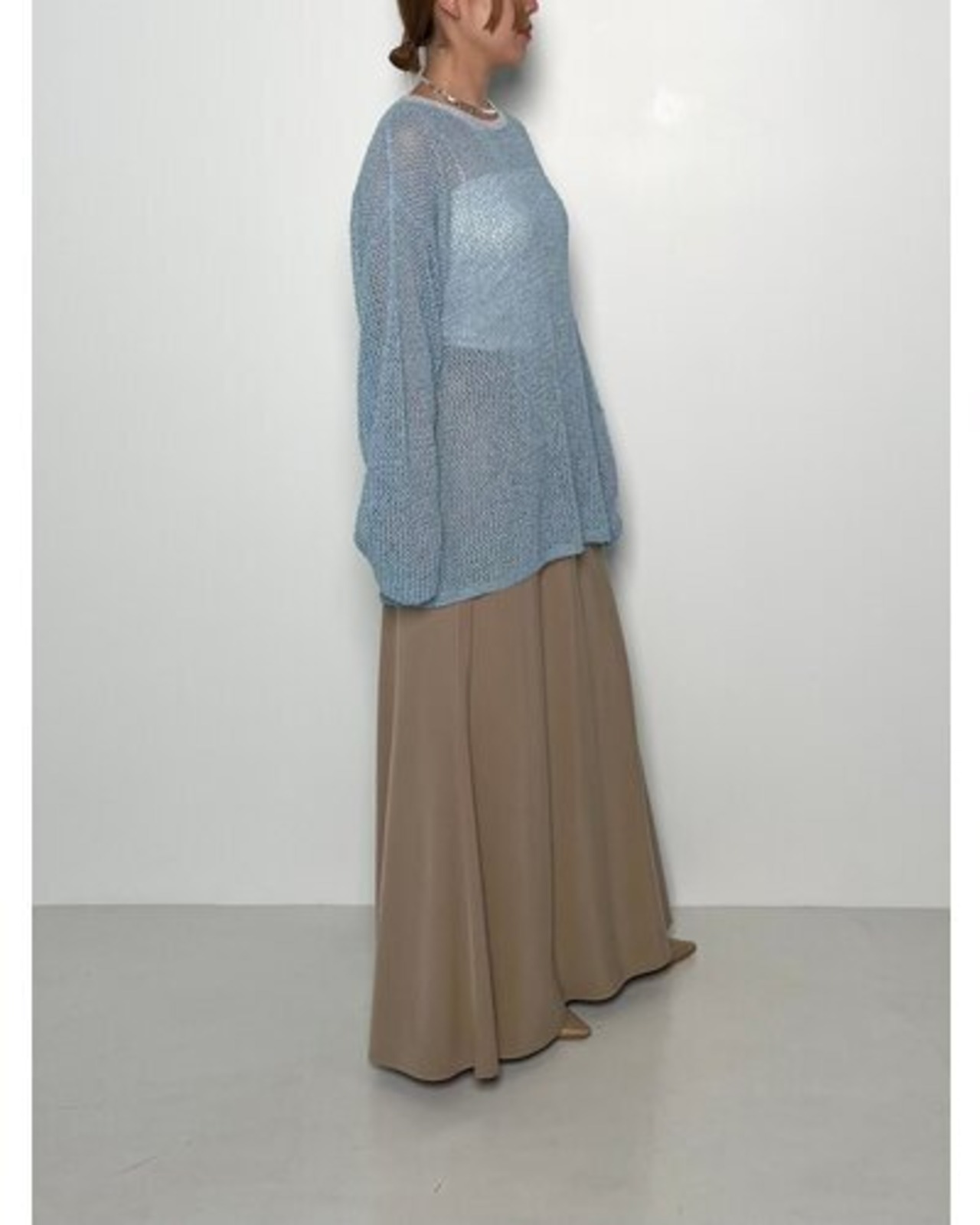 軽いタッチのスカシ編みにしているので、寒い時期はロンTeeなどをレイヤードして頂き、タンクなど、インナーを軽くする事で暖かい時期まで、ロングシーズン着用頂けます。