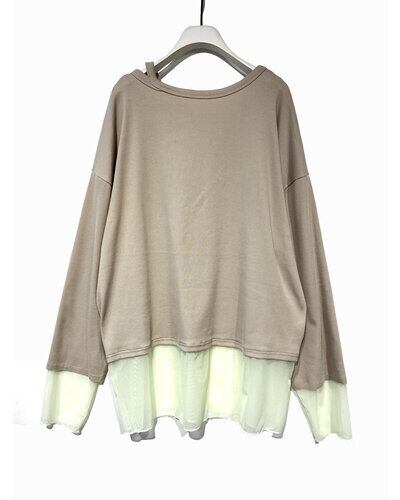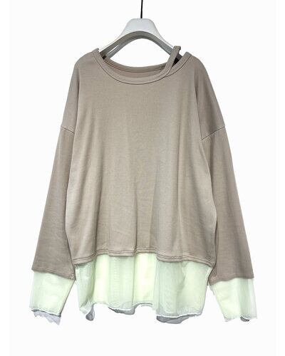配色のチュールを重ね着しているようなデザインのプルオーバー。