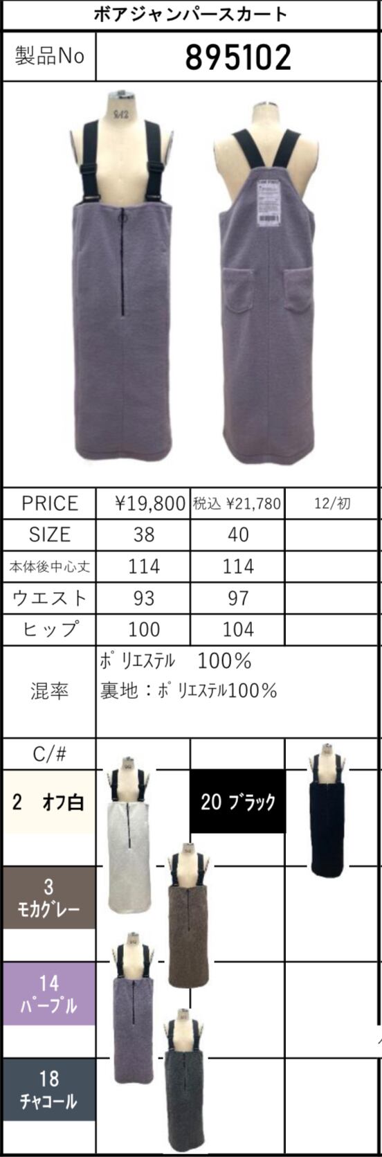 color No.2オフ白/No.3モカグレー/No.14パープル/No.18チャコール/No.20ブラック