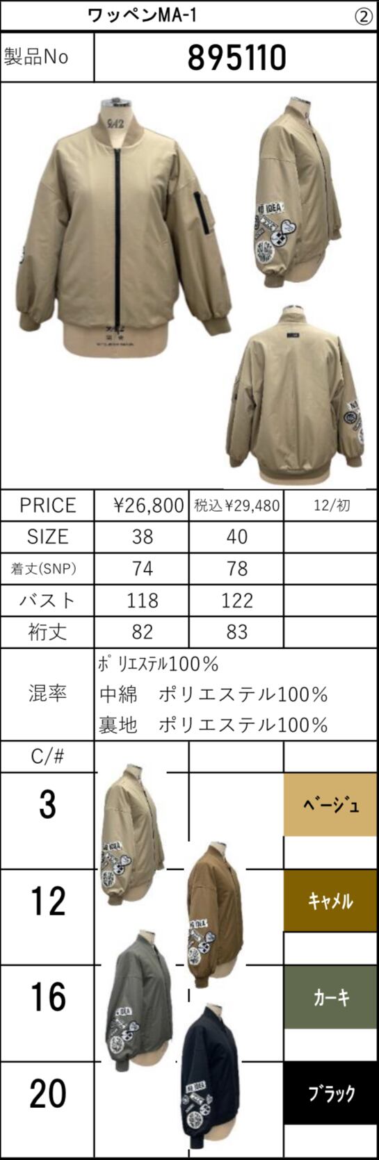 ★予約販売【 ayane 】ワッペンMA-1 (895110) 12月お届け