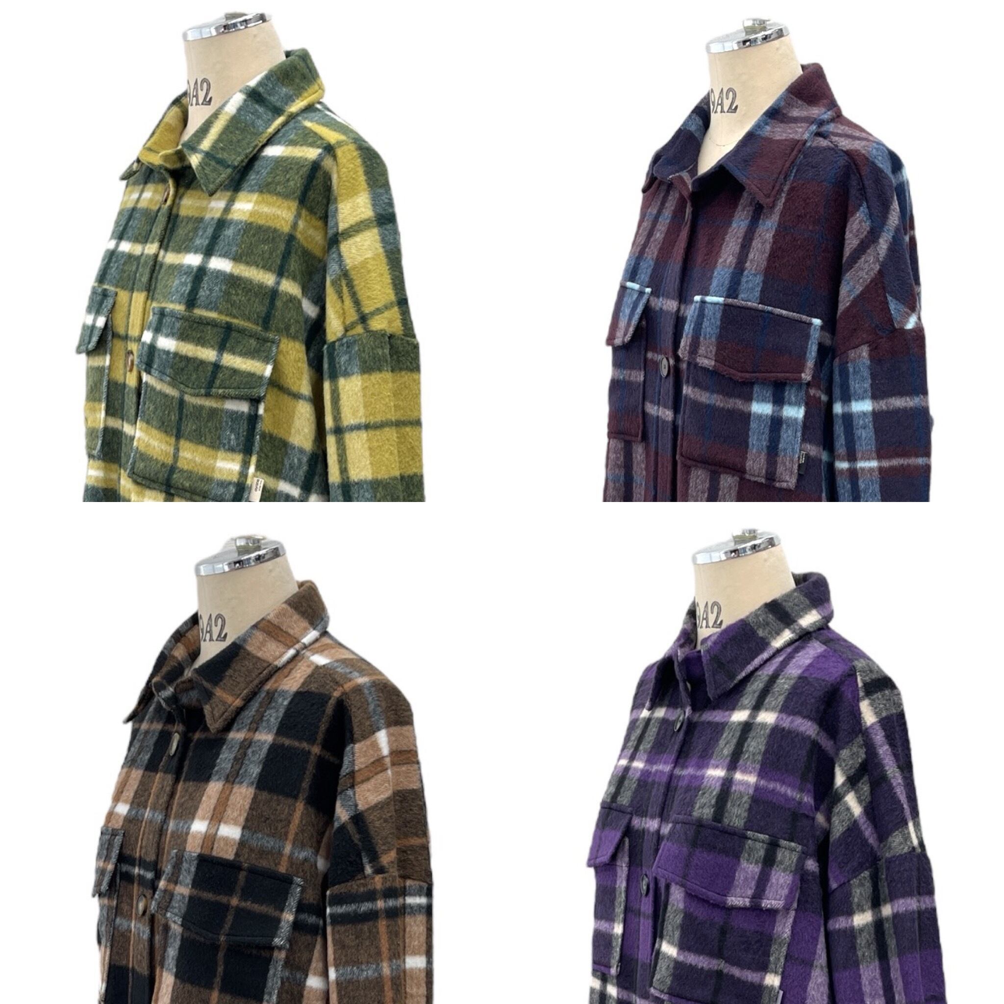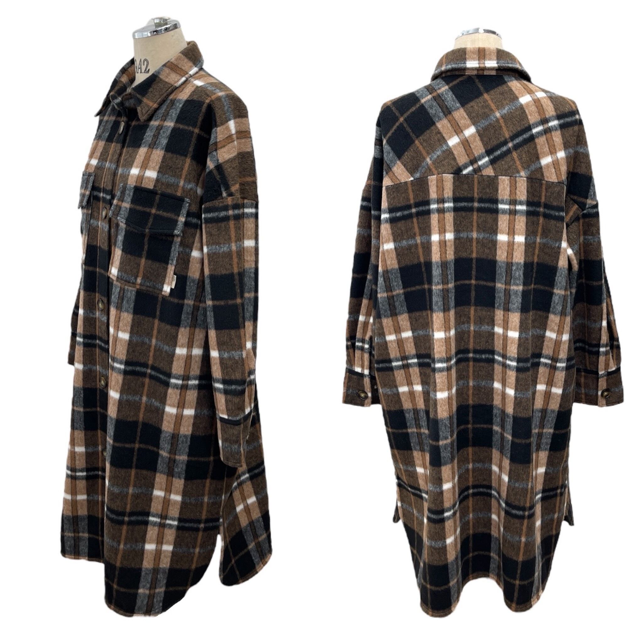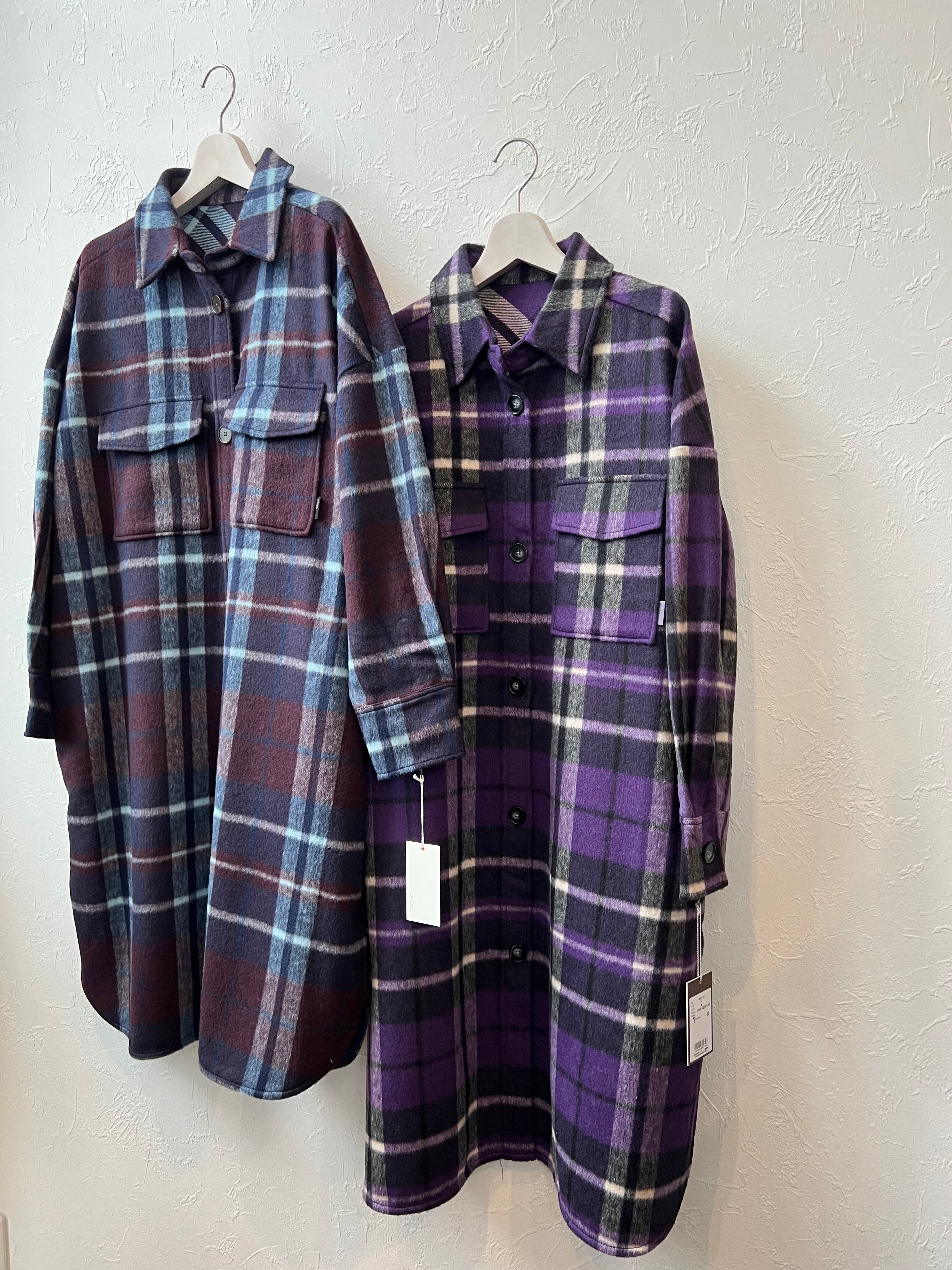 【 ayane 】チェックシャギーロングシャツコート (895118)