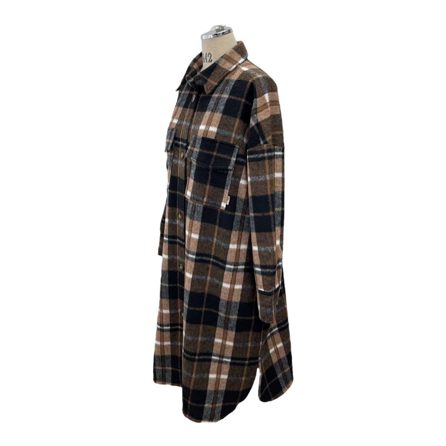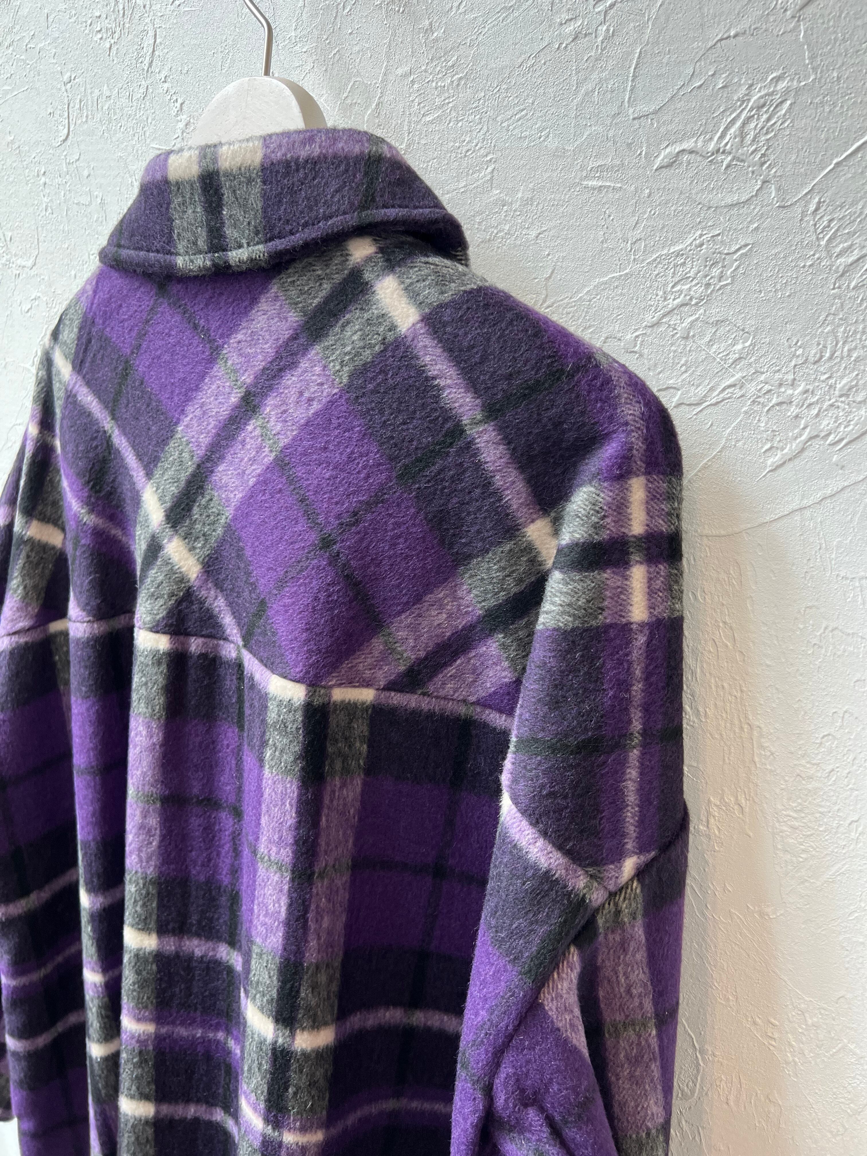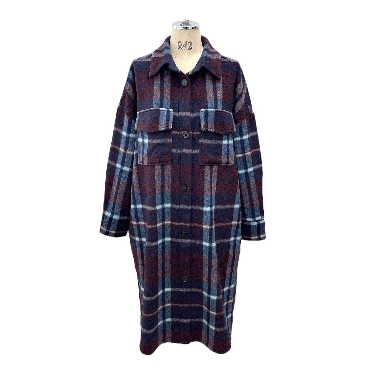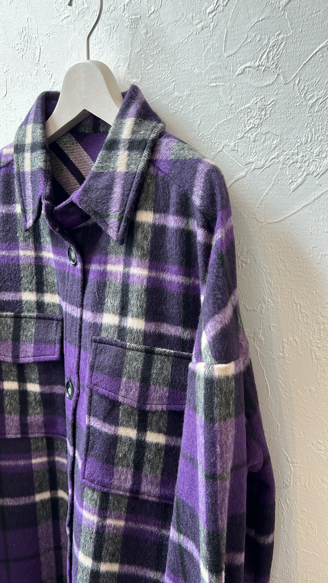 【 ayane 】チェックシャギーロングシャツコート (895118)