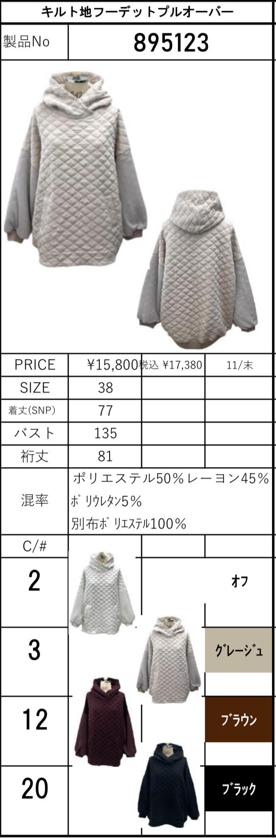 ★予約販売【 ayane 】キルト地フーデットプルオーバー (895123) 11月お届け