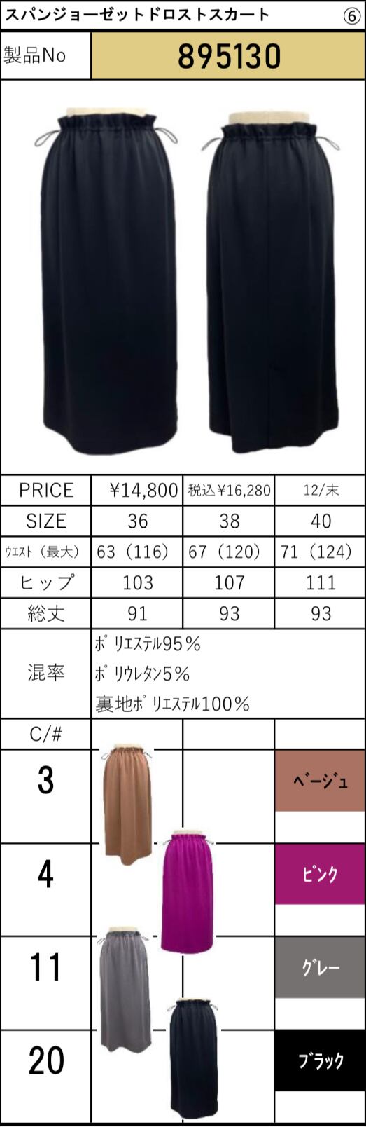 予約販売【 ayane 】スパンジョーゼットドロストスカート (895130) 12月お届け