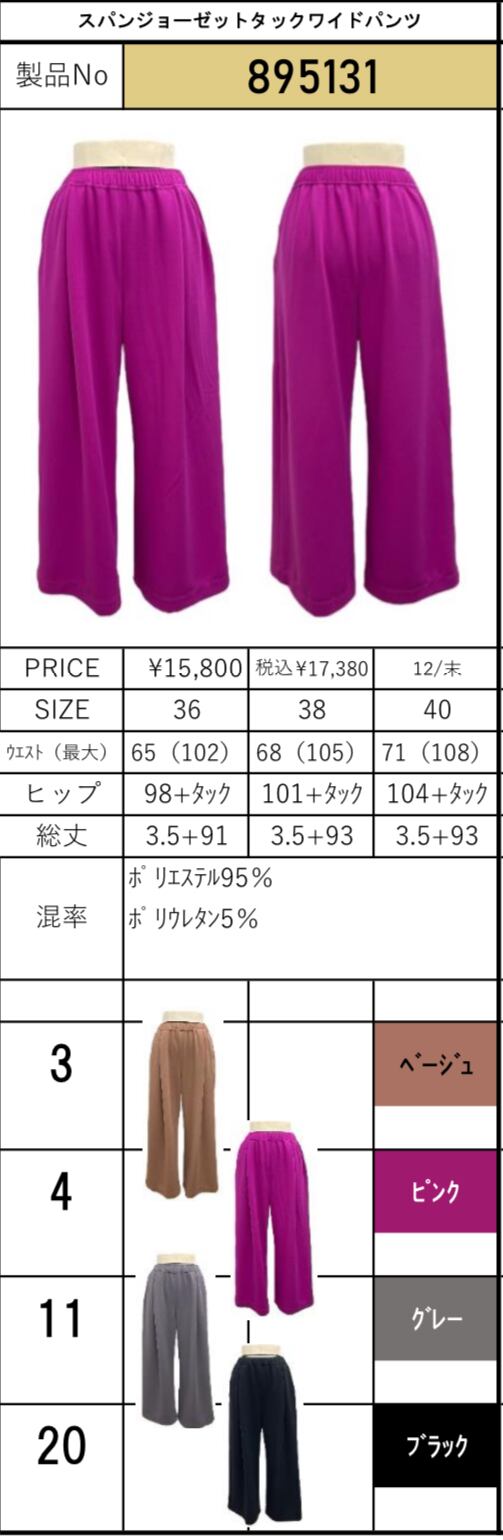 予約販売【 ayane 】スパンジョーゼットタックワイドパンツ (895131) 12月お届け