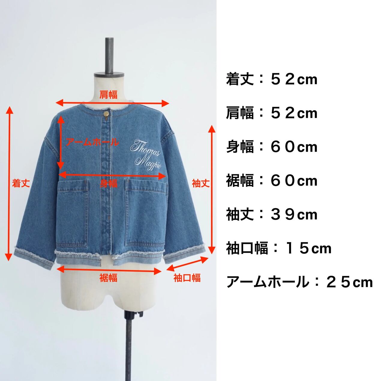 衣類は全て平台に平置きし外寸を測定しております。