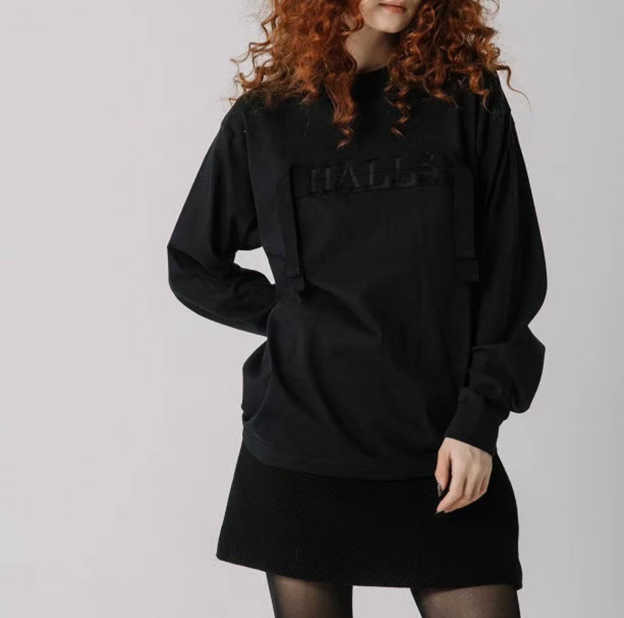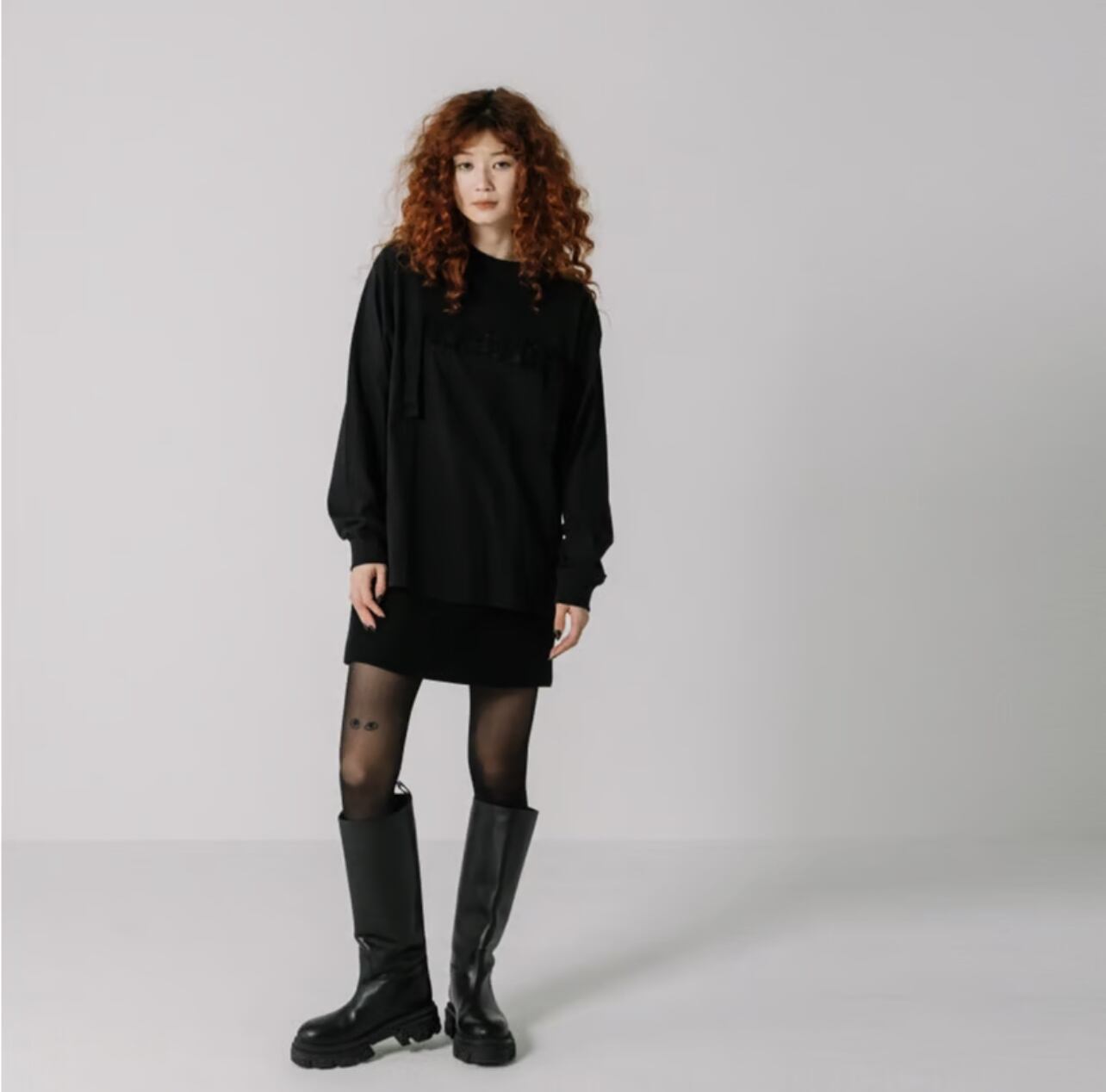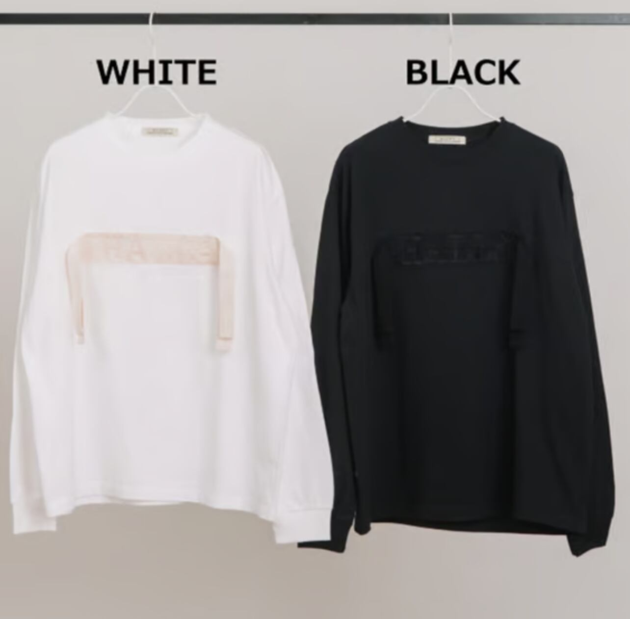 刺繍を施したコットンテープを貼り付けた立体的なデザインのロングTシャツ。