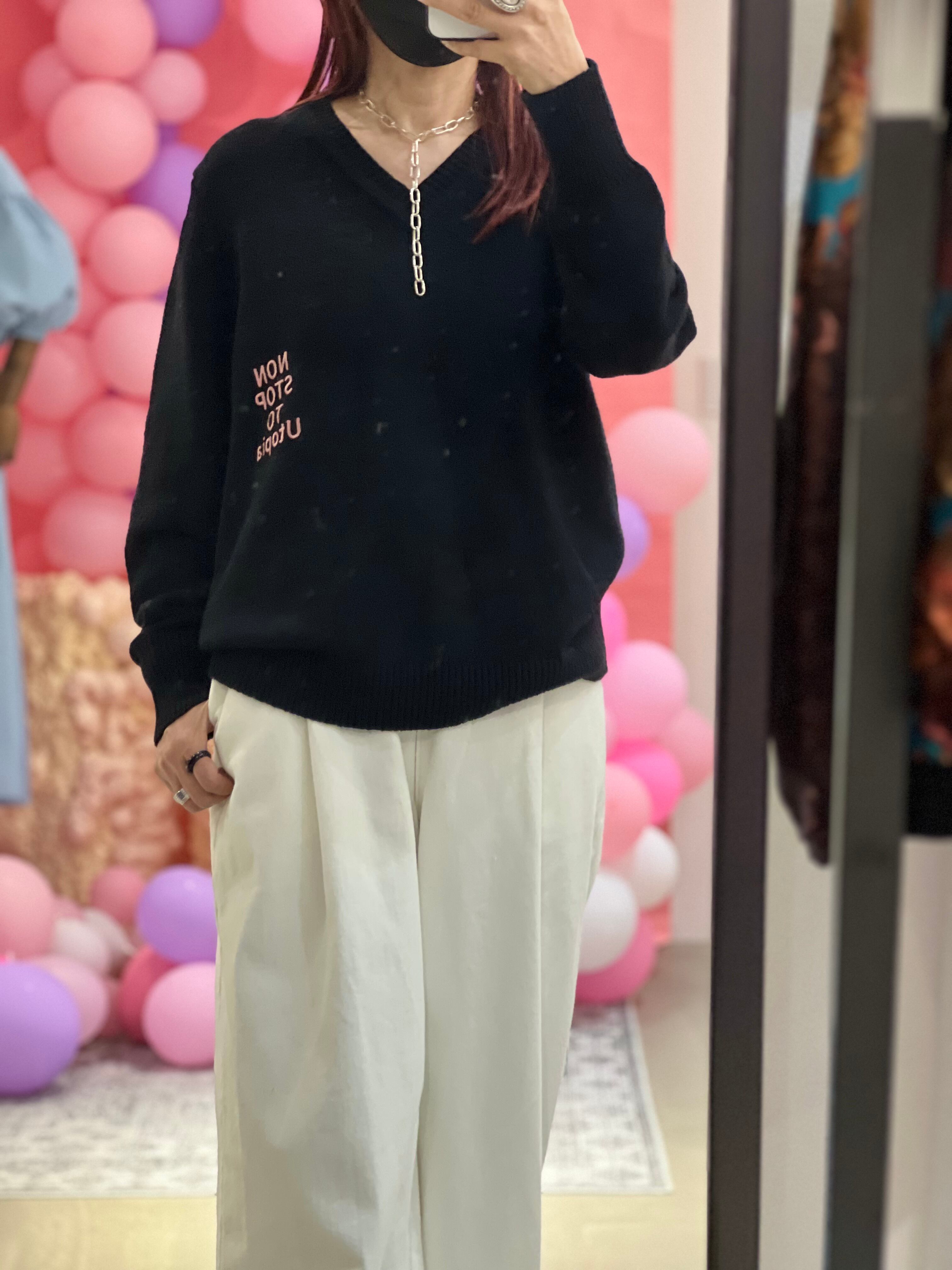 予約販売【 THOMAS MAGPIE 】Vneck logo embroidery knit(2251702) 2月お届け