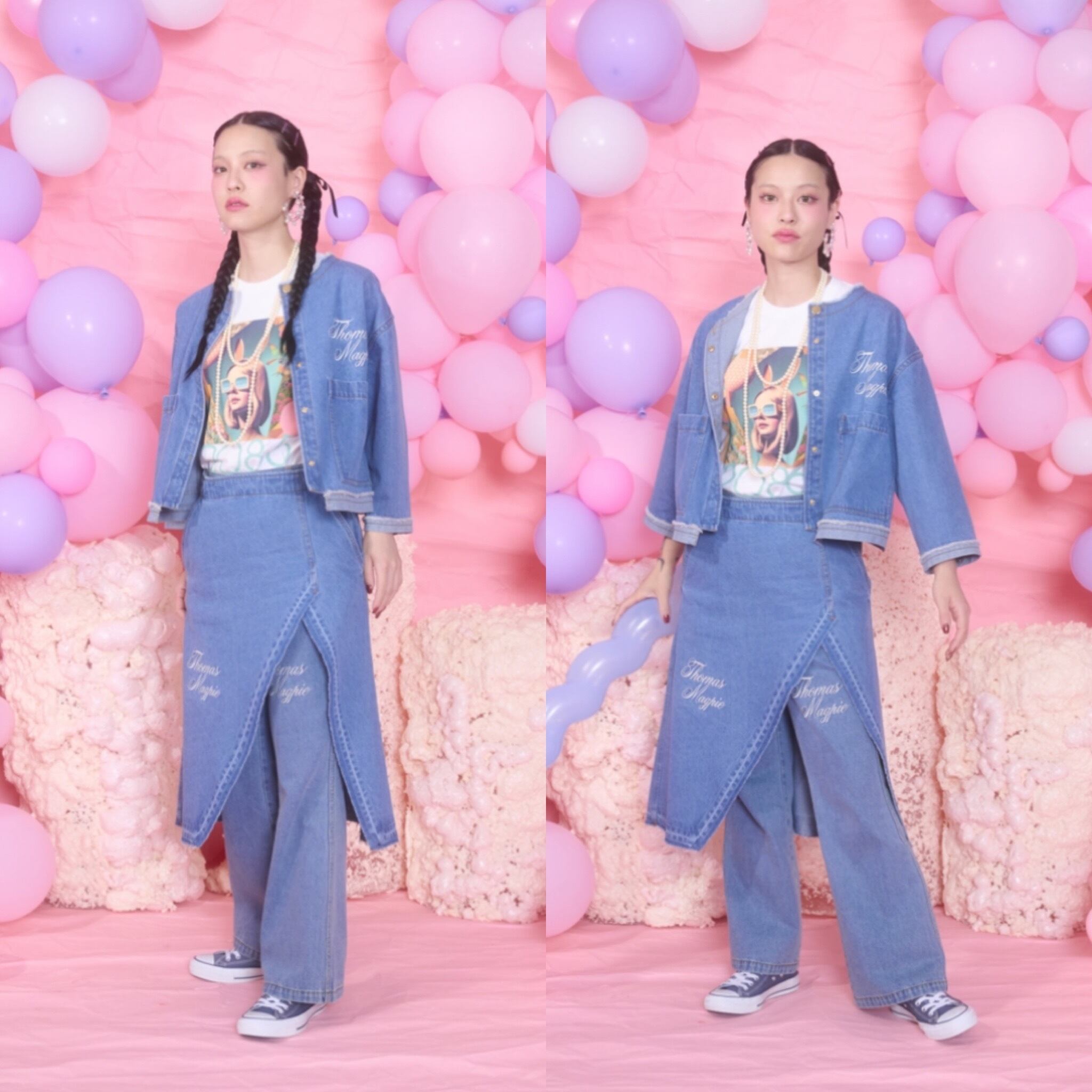予約販売【 THOMAS MAGPIE 】denim layered skirt(2251602) 2月お届け