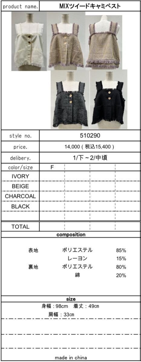 ★予約販売【 CYAN TOKYO 】MIXツイードキャミベスト (510290) 2025年 2月中旬お届け
