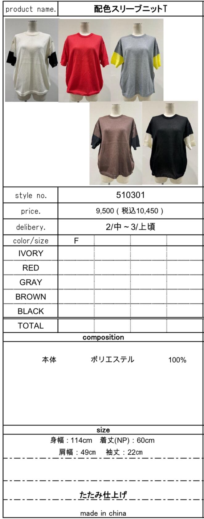 ★予約販売【 CYAN TOKYO 】配色スリーブニットT (510301) 2025年 3月上お届け