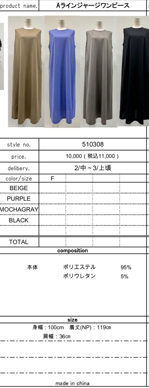★予約販売【 CYAN TOKYO 】Aラインジャージワンピース (510308) 2025年 3月上お届け