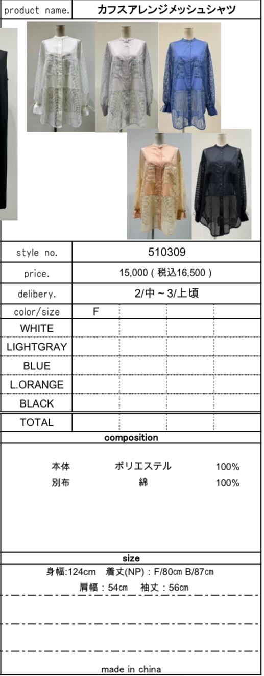 ★予約販売【 CYAN TOKYO 】カフスアレンジメッシュシャツ (510309) 2025年 3月上お届け