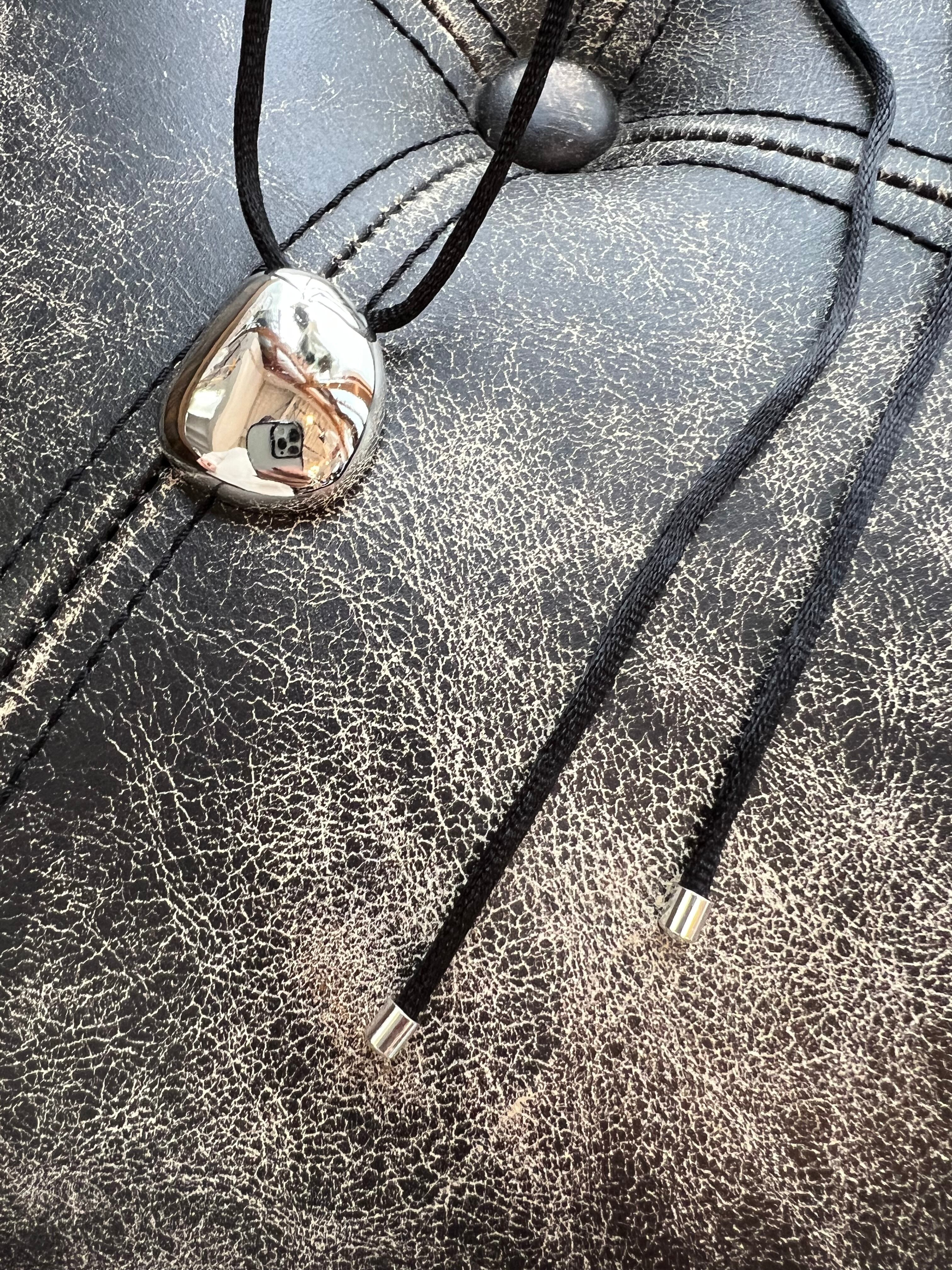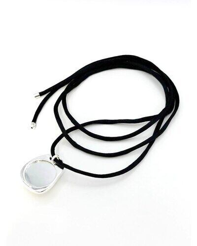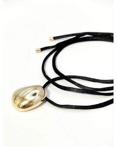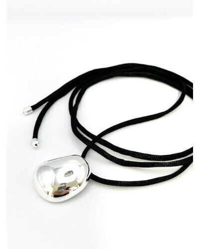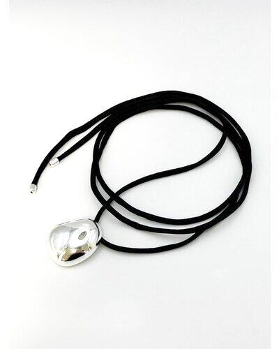 存在感のあるぷっくりとしたメタルTOPとモード感漂う黒紐チョーカーの組み合わせは、つけるだけでいつものコーディネートが締まる万能ネックレスです。