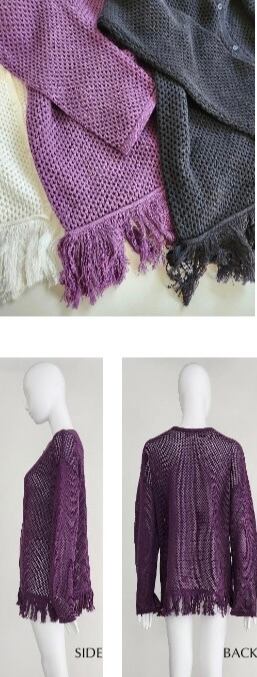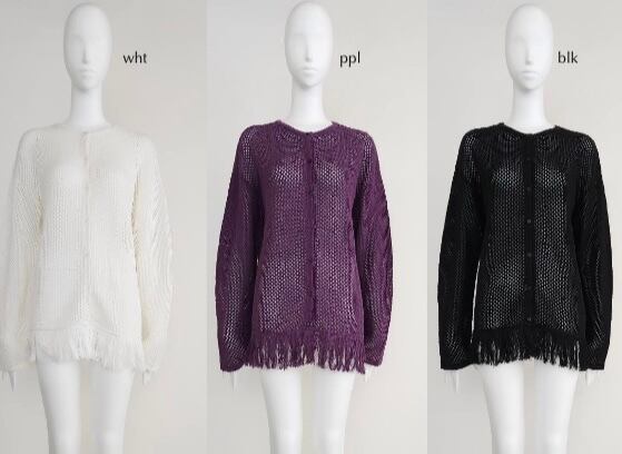予約販売【boutiqueordinary】Fringe Hem Mesh 2way Cardigan ( BO25-909N) 1月お届け