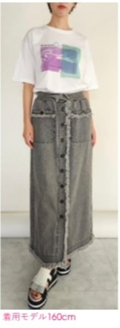 タイトシルエットのフロントスリットデニムスカートです。スタイリッシュなタイトフィットが女性らしいラインを強調し、フロントのスリットデザインが動きやすさとアクセントを加えています。所にフリンジディテールがされ、カジュアルでありながらもトレンド感のある印象を与えます。ウエストリプでイージーな字き心地。内側にはスピンドルが通してあり、サイズ調整可能です。前後のパッチポケットの他に、両給シーム利用のポケット有り。同表材のジャケットとのセットアップコーデも可能です。
