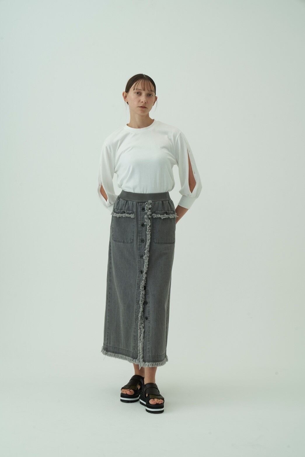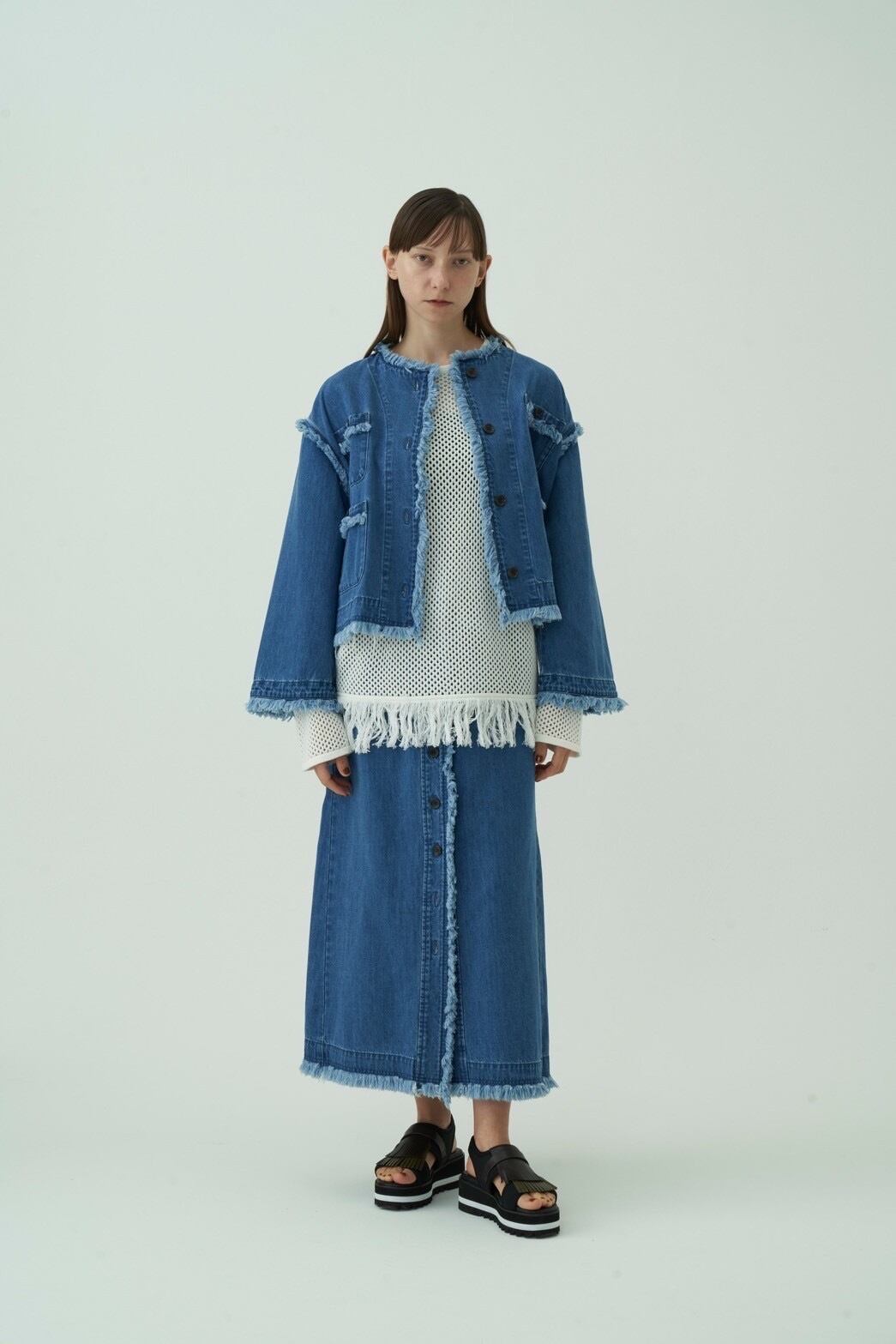 予約販売【boutiqueordinary】 Front Slit Fringe Denim Skirt ( BO25-915K) 1月お届け