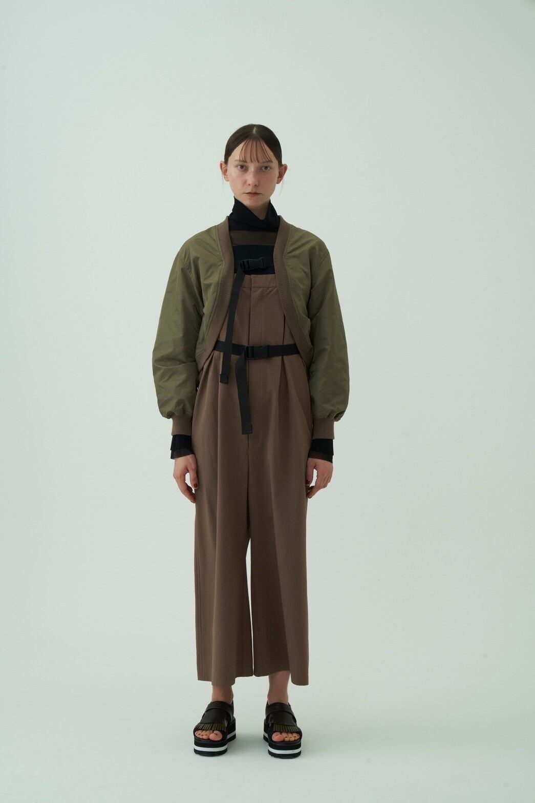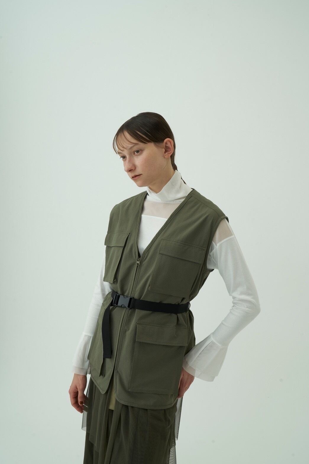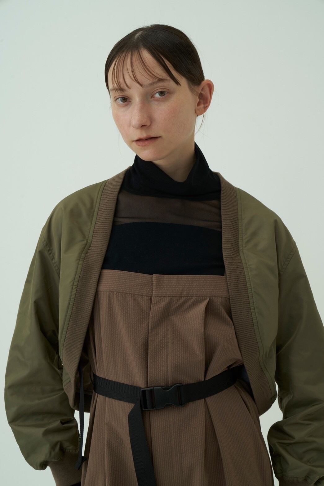 チュールとスムースを切り替えたドローストリングネックのブルオーバーです。ゆったりとしたシルエットが特徴で、リラックス感のある着心地を提供します。独口にはチュールを2枚重ねたカフスが施されており、アクセントとなっています。軽やかで透け感のあるチュール使いが、エレガントでありながらもカジュアルな印象を与えるアイテムです。