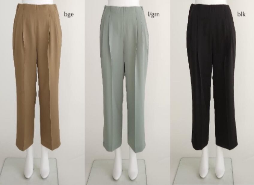 フロントに2タックを施すことで美しいドレープが描かれたストレートシルエットのトラウザー、正面から見たときと、サイドから見たときの印象が変わるデザイン性に長けた1本。センタープレスでより立体感とスタイリッシュな印象を与えています。ウエストはフロントをスッキリ、後パンツだけゴムで伸縮させ、様々な体型にフィット。座ったときやんだときのストレスも感じにくく、コンフォータブルな安き心地を提供します。同素材のジャケットとセットアップコーデも可能です。