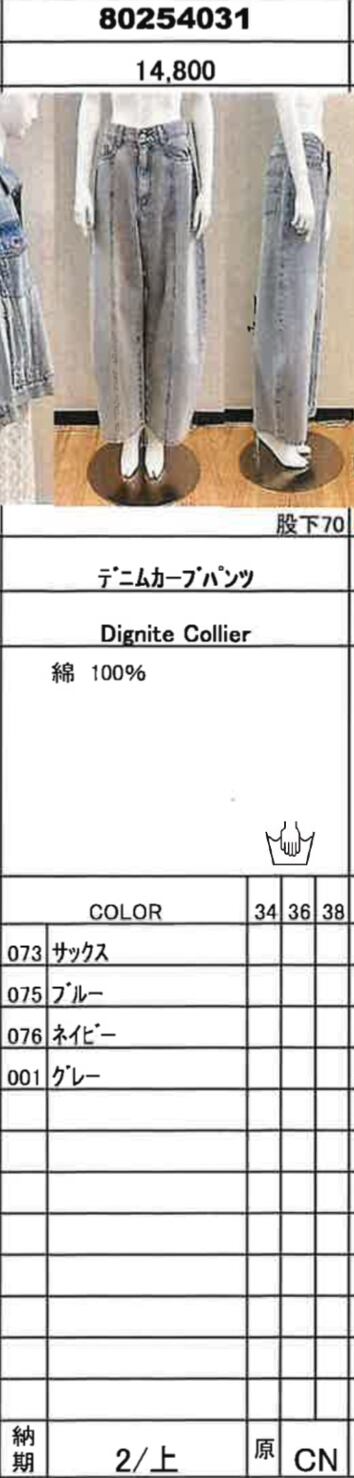 予約販売【Dignite Collier】デニムカーブパンツ (80254031 ) 2025年 2月上旬お届け