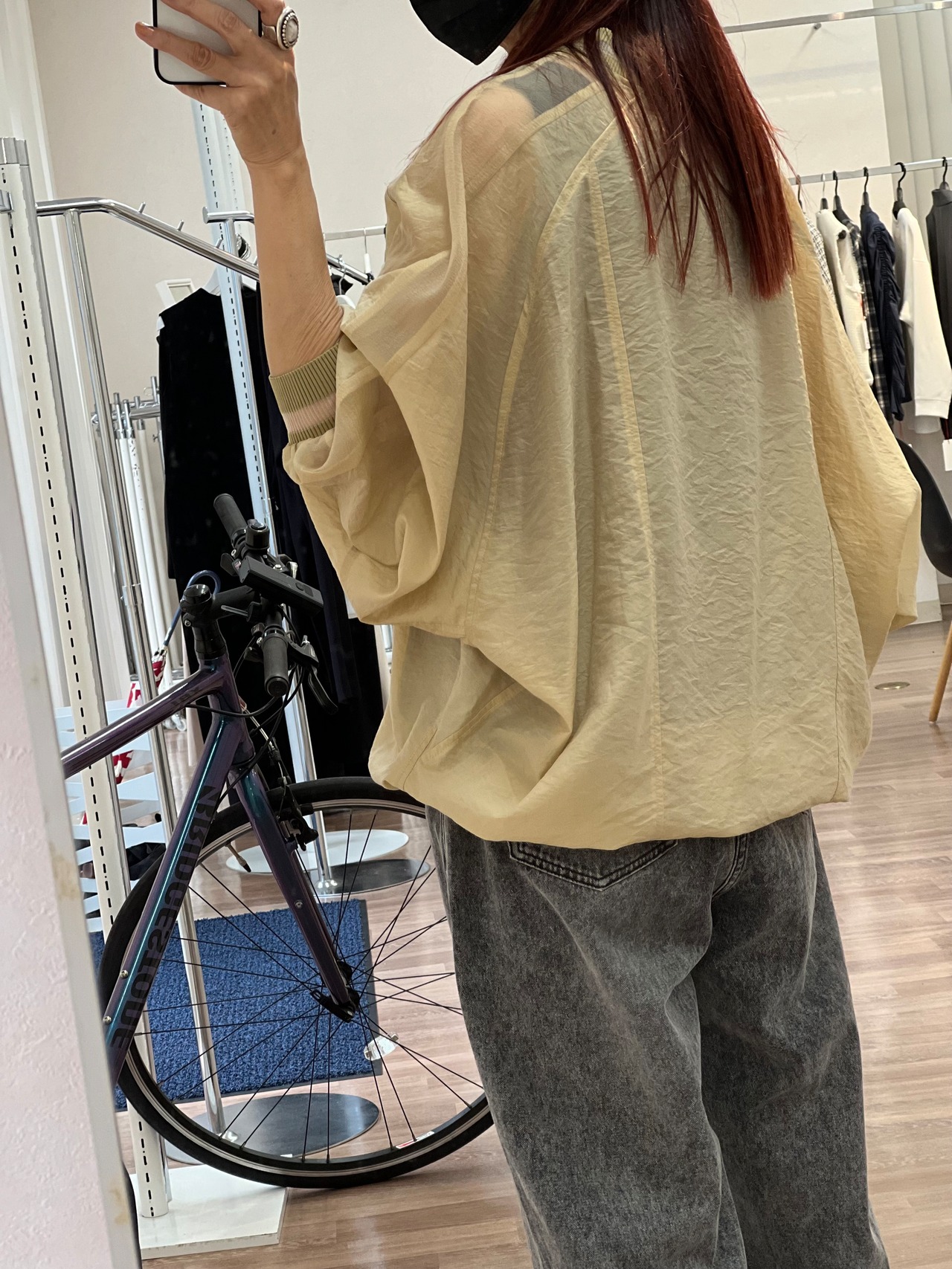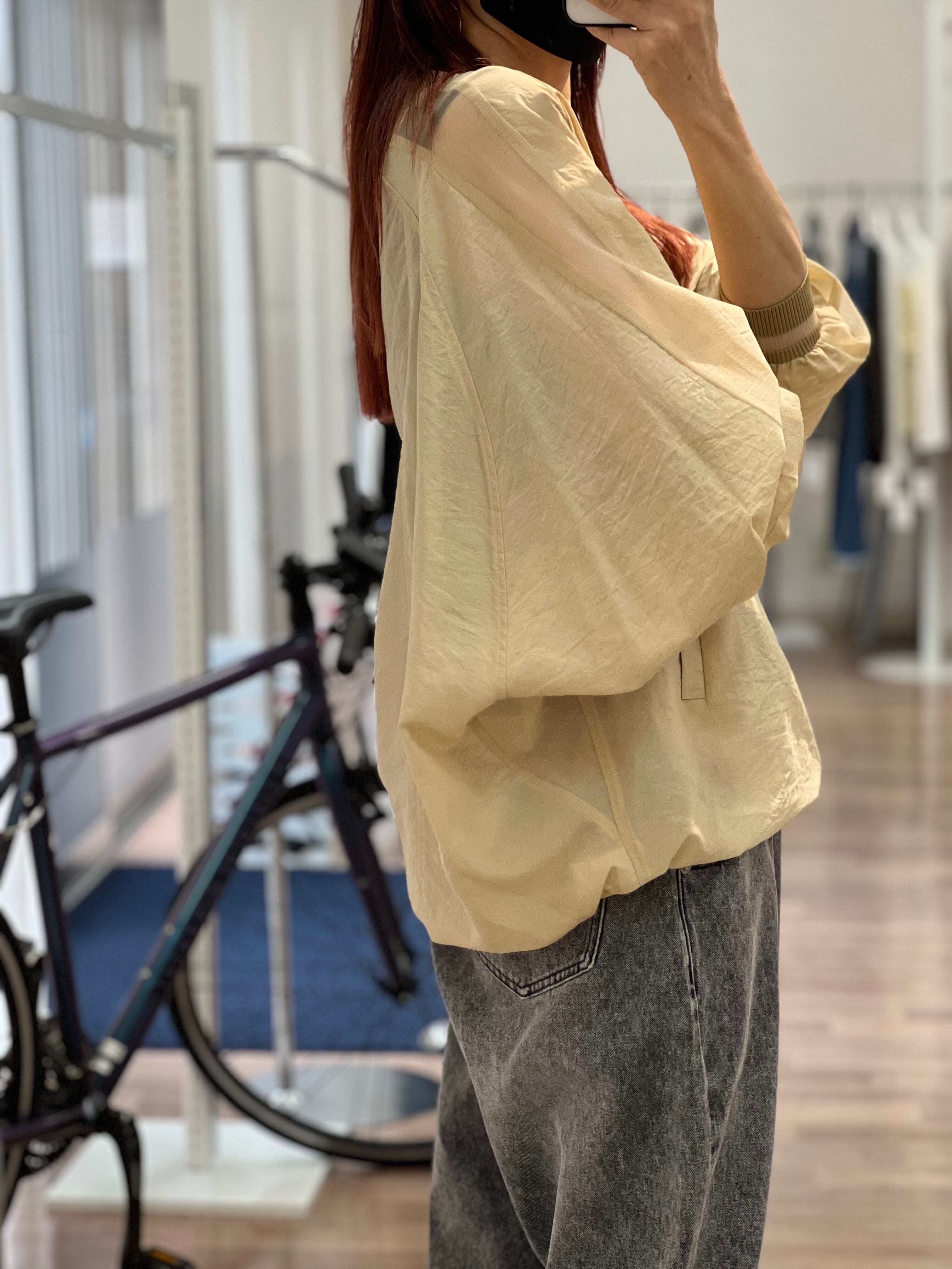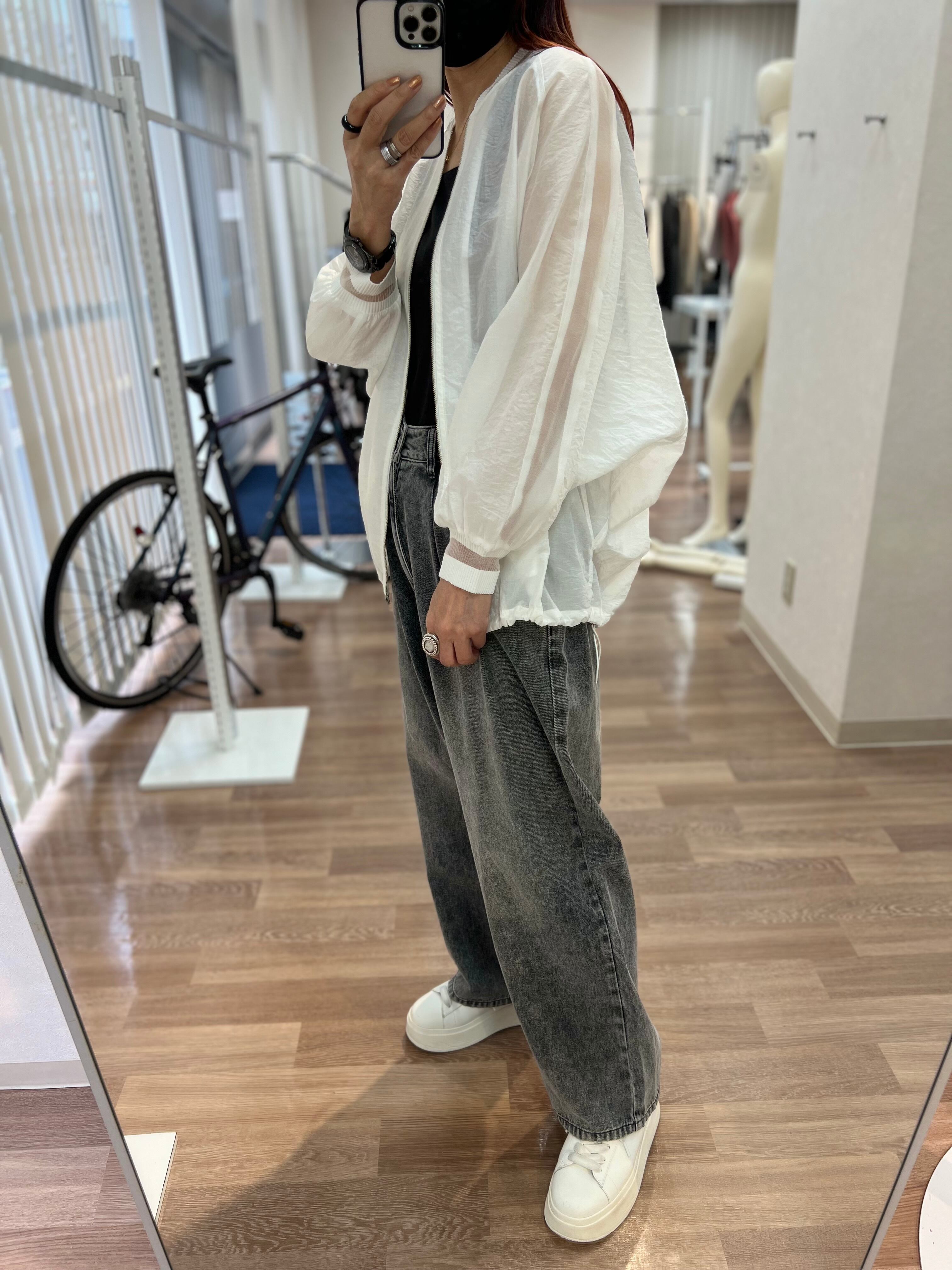 透け感がありとにかく軽いお素材です!ドローコードで裾巾の調整も可能。