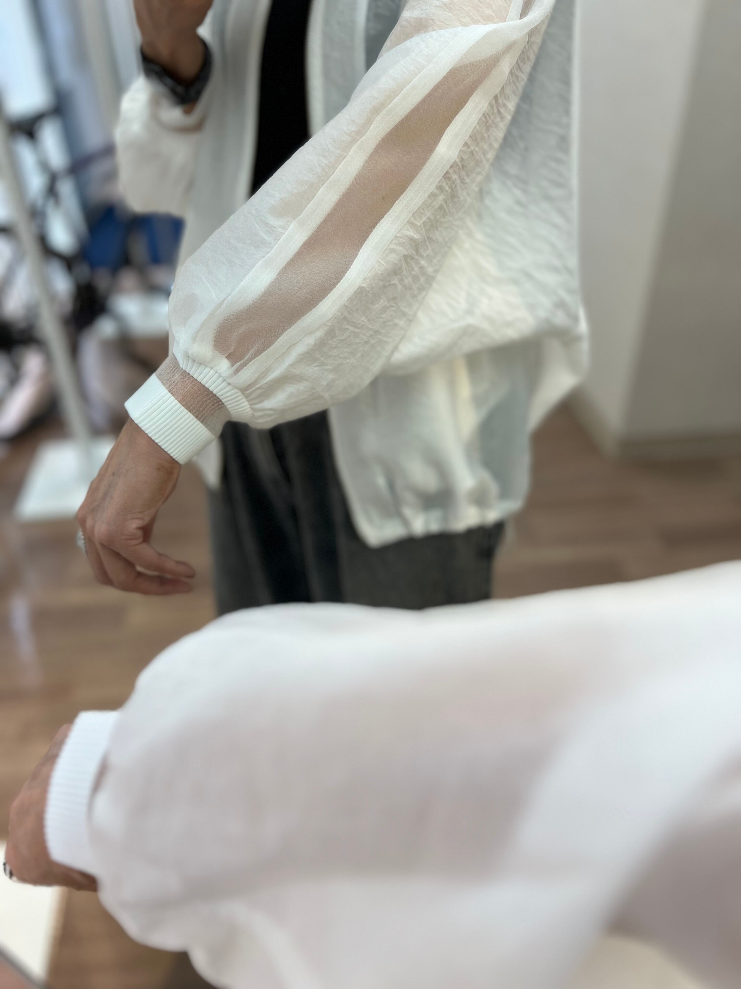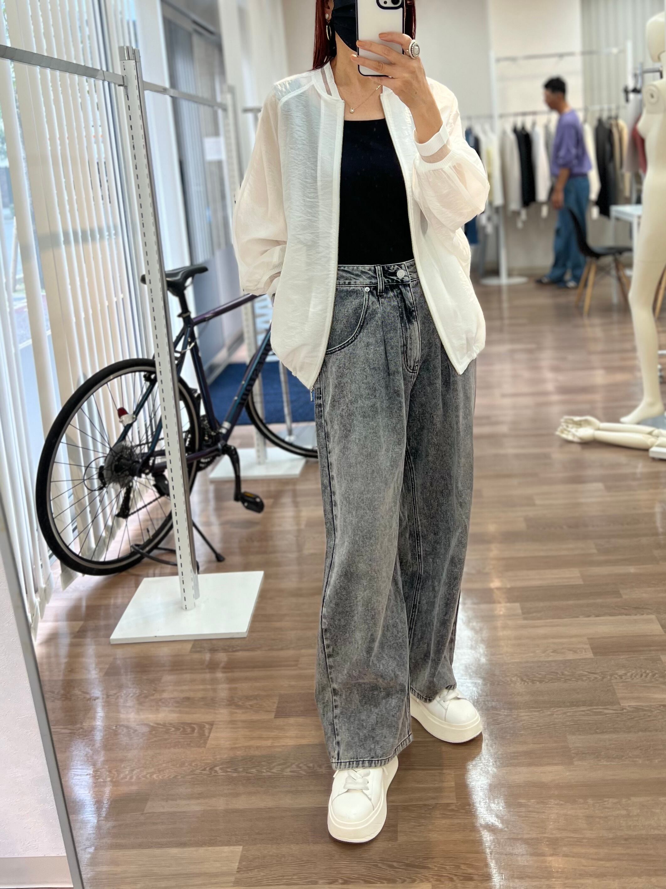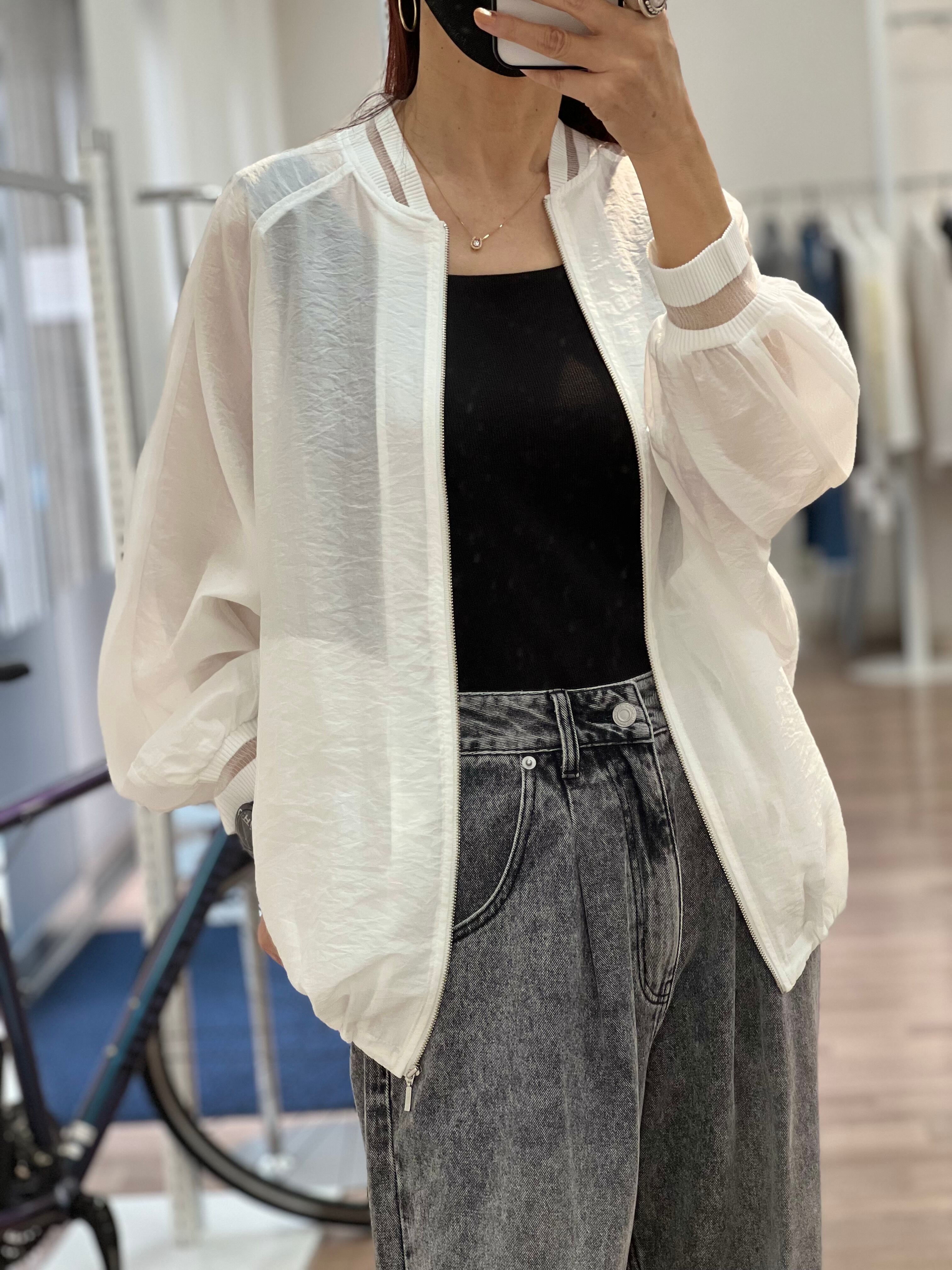 透け感がありとにかく軽いお素材です!ドローコードで裾巾の調整も可能。