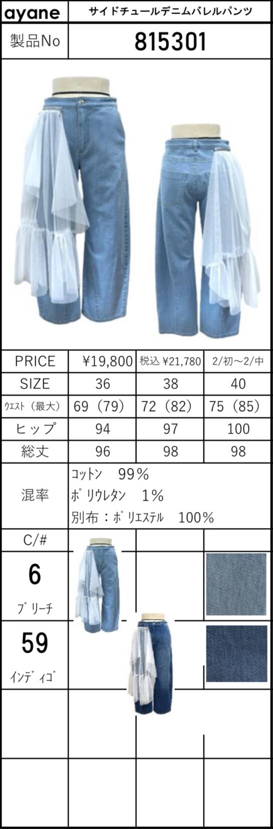 予約販売【 ayane 】サイドチュールデニムバレルパンツ (815301) 2月中旬お届け
