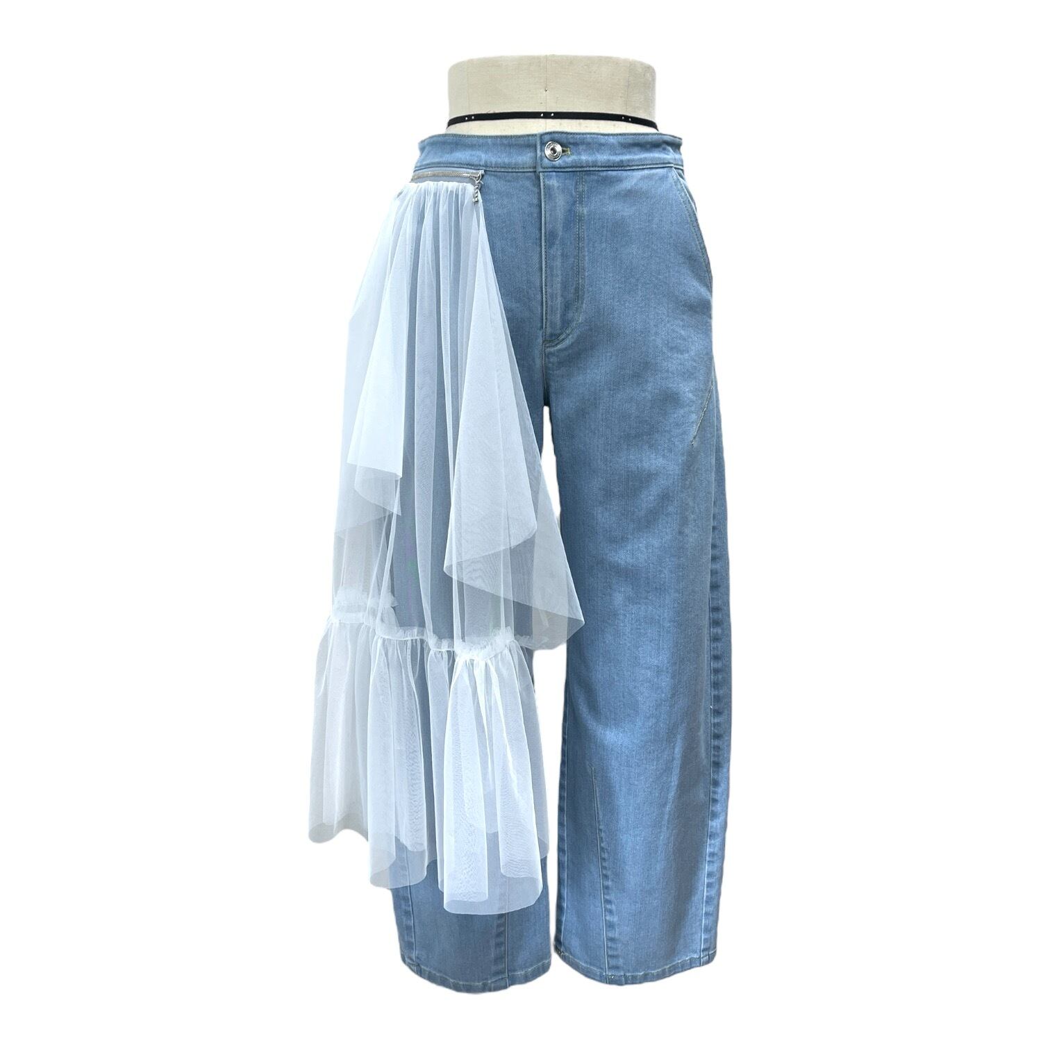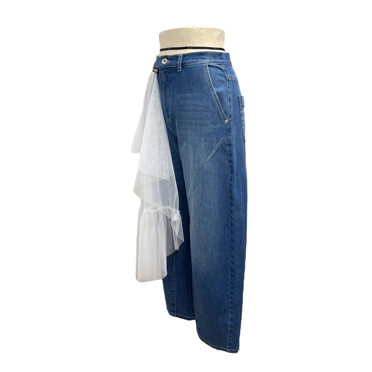 サイドチュールデニムバレルパンツ