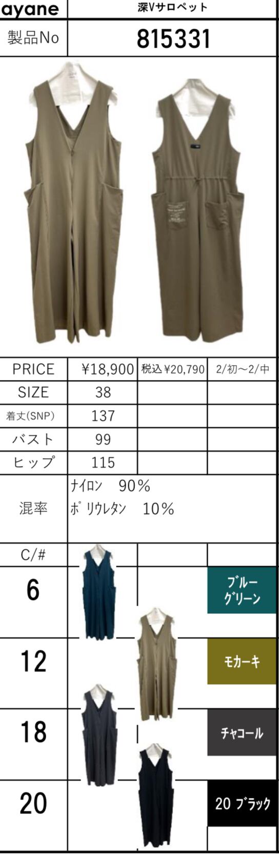 予約販売【 ayane 】 深Vサロペット(815331) 2月中旬お届け