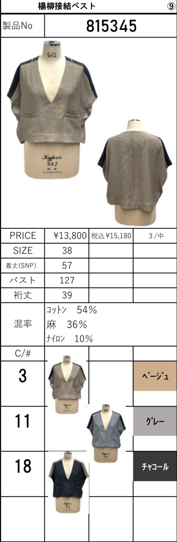 予約販売【 ayane 】楊柳接結ベスト (815345) 3月中旬お届け